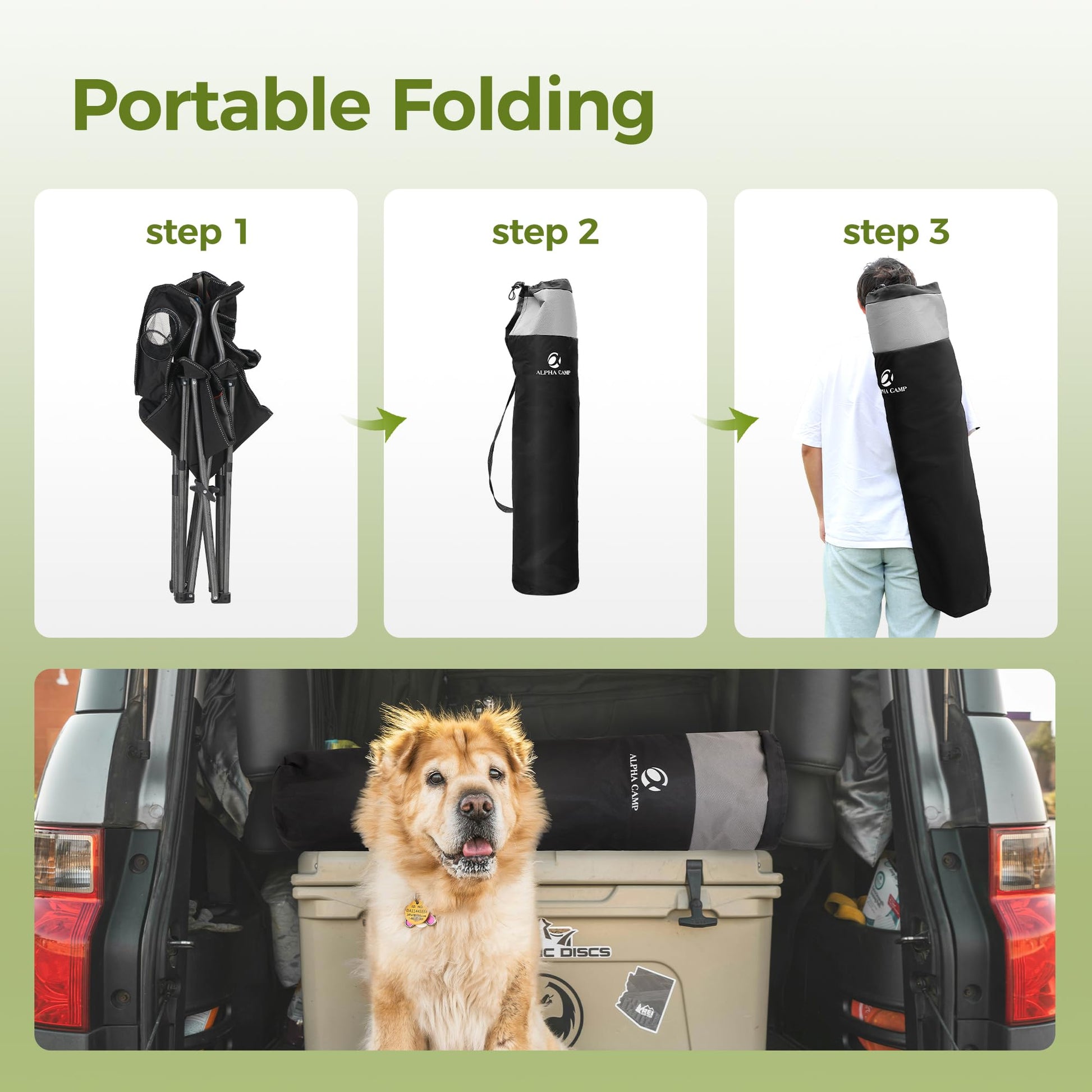 ALPHA CAMP 2PC Oversized Camping Folding Chair, Heavy Duty Support 450 LBS Steel Frame Collapsible Padded Arm Chair with Cup Holder Quad Lumbar Back, Portable for Outdoor,Black