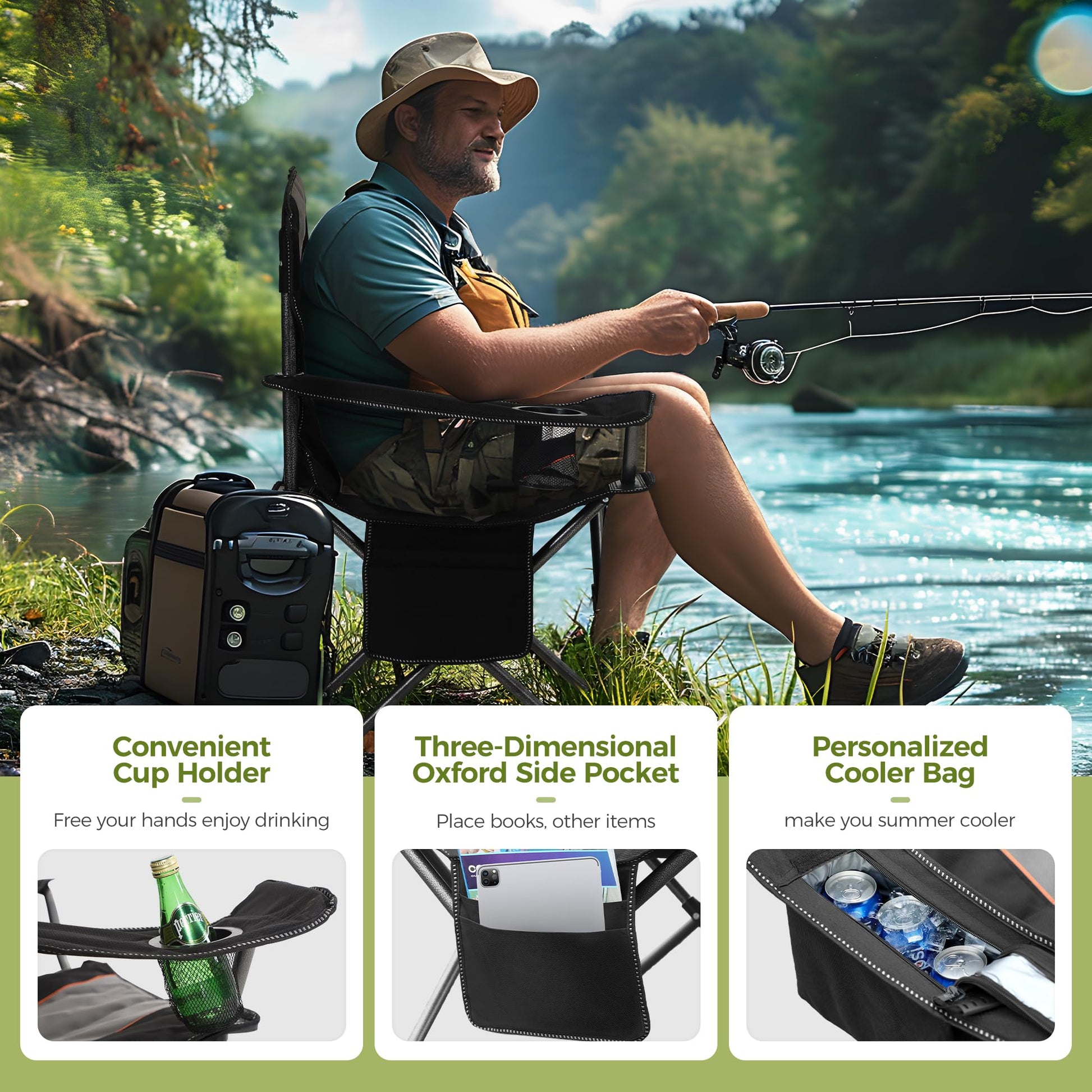 • ❤ 【Large Size】 Oversized Camping Folding Chair Size is 25.20' L x 36.61' W x 39.37'H, Weight is 13.2lbs, Large seat area with 600x 300D padded oxford fabric and padded armrest ensure comfort of this chair