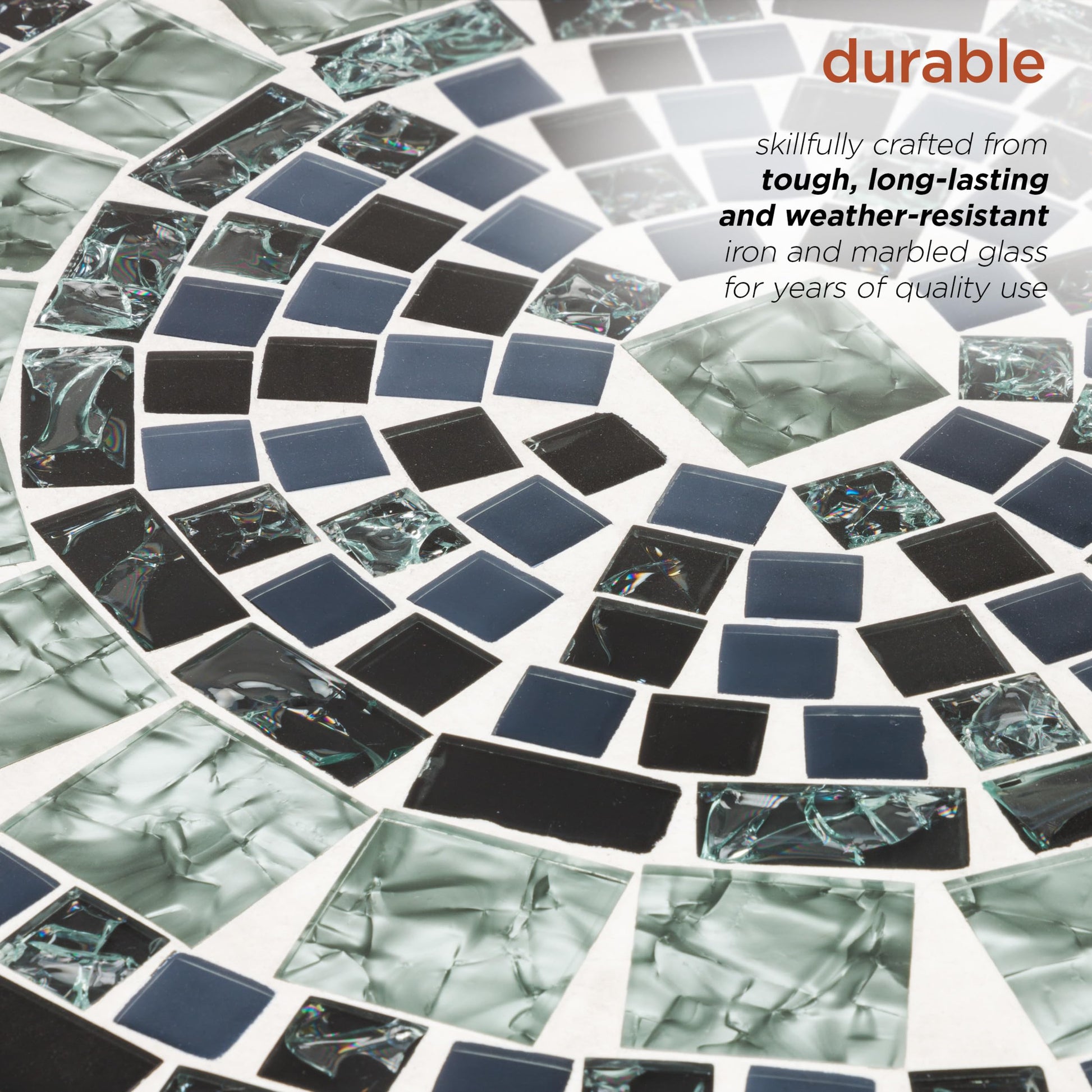 Alpine Corporation Indoor/Outdoor Marbled Glass Mosaic 3-Piece Bistro Set Folding Table and Chairs Patio Seating