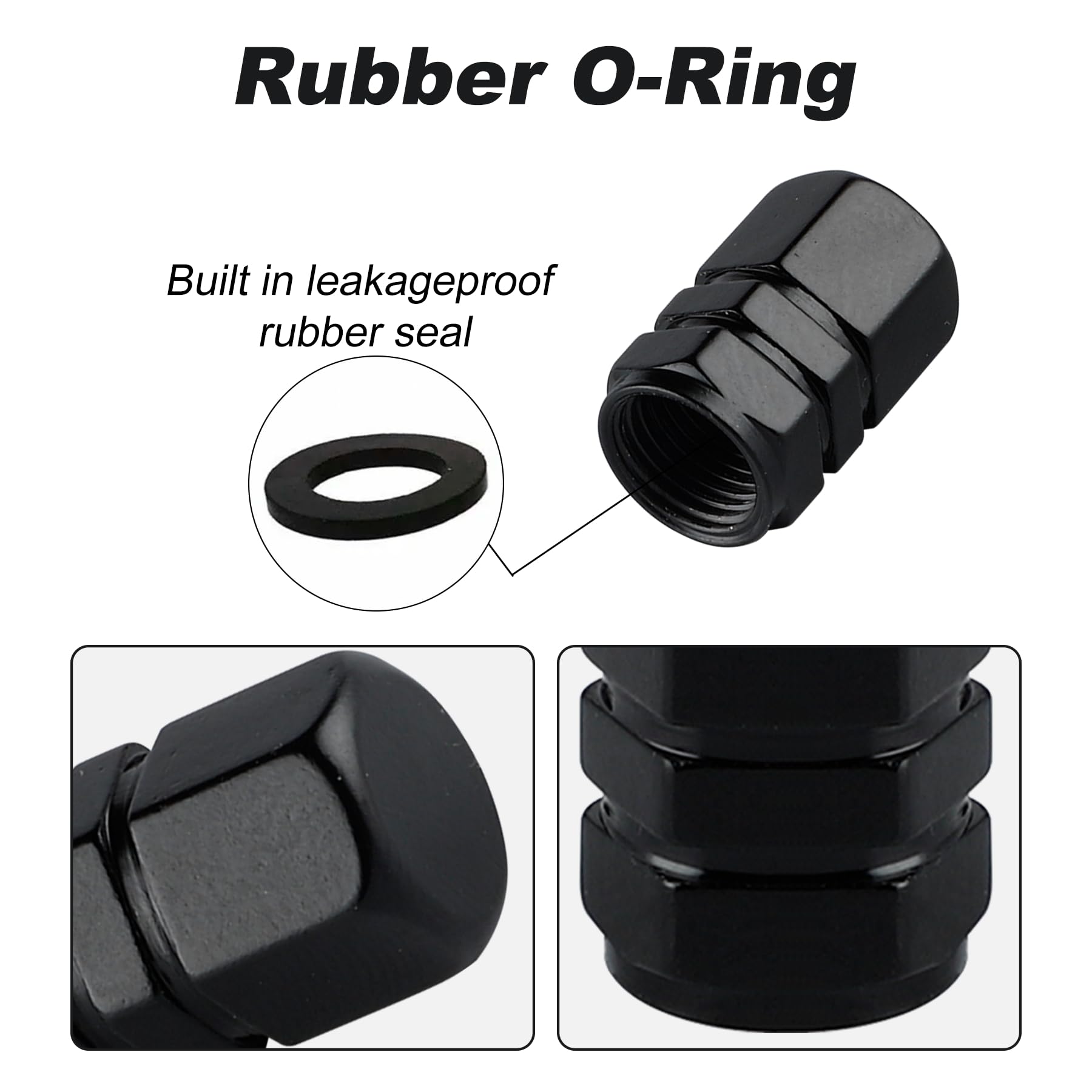 alpmosn Aluminum Tire Stem Valve Caps Wheel Valve Covers Car Dustproof Tire Cap Cover Accessories, Universal for SUV, Car, Bike and Motorcycle, Hexagon Shape (4PCS Black)