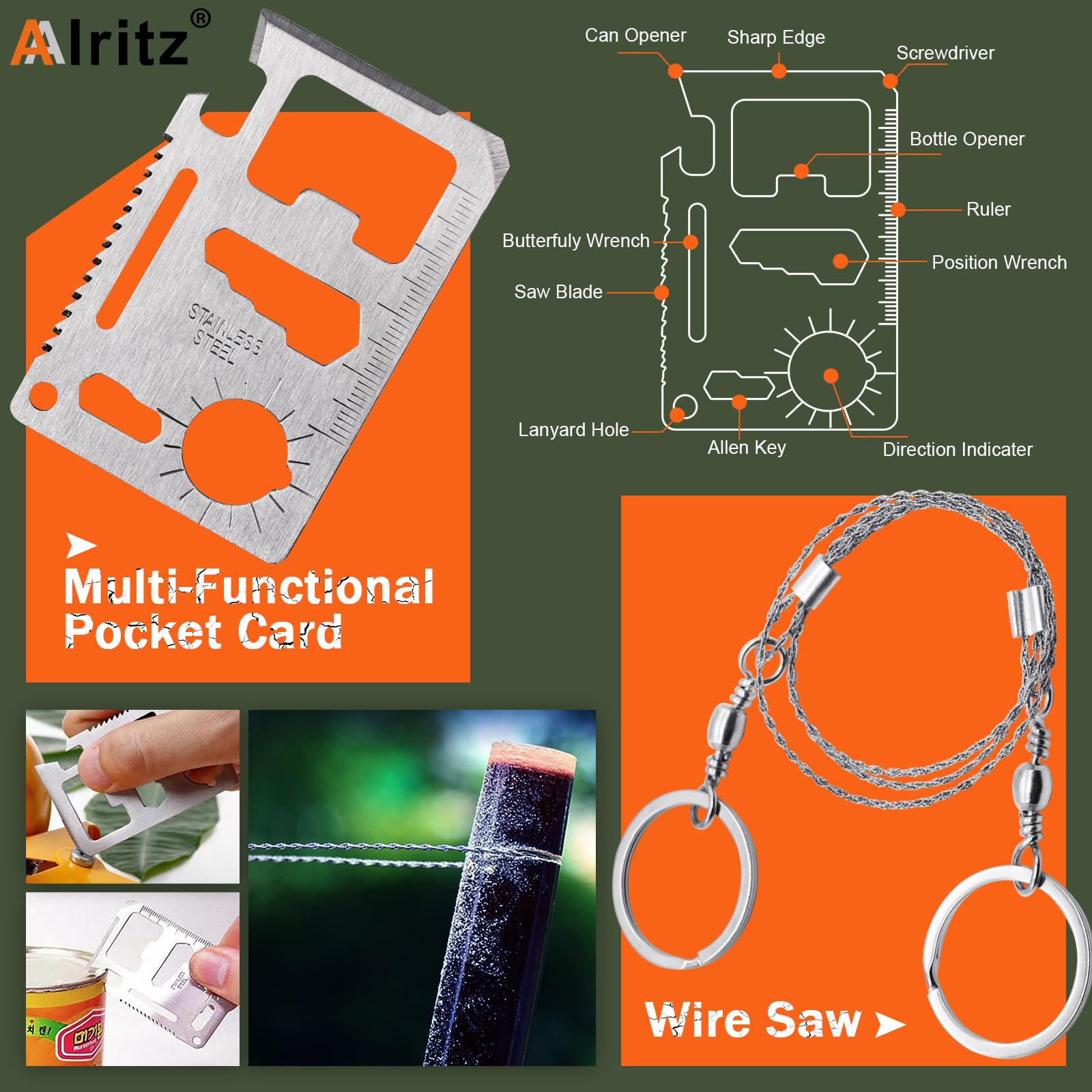 Alritz Emergency Survival Kit, for Men 12 in-1 Outdoor Survival Gear Lifesaving Tools Contains Compass, Fire Starter,for Camping Hiking Wilderness Adventures Disaster Preparedness