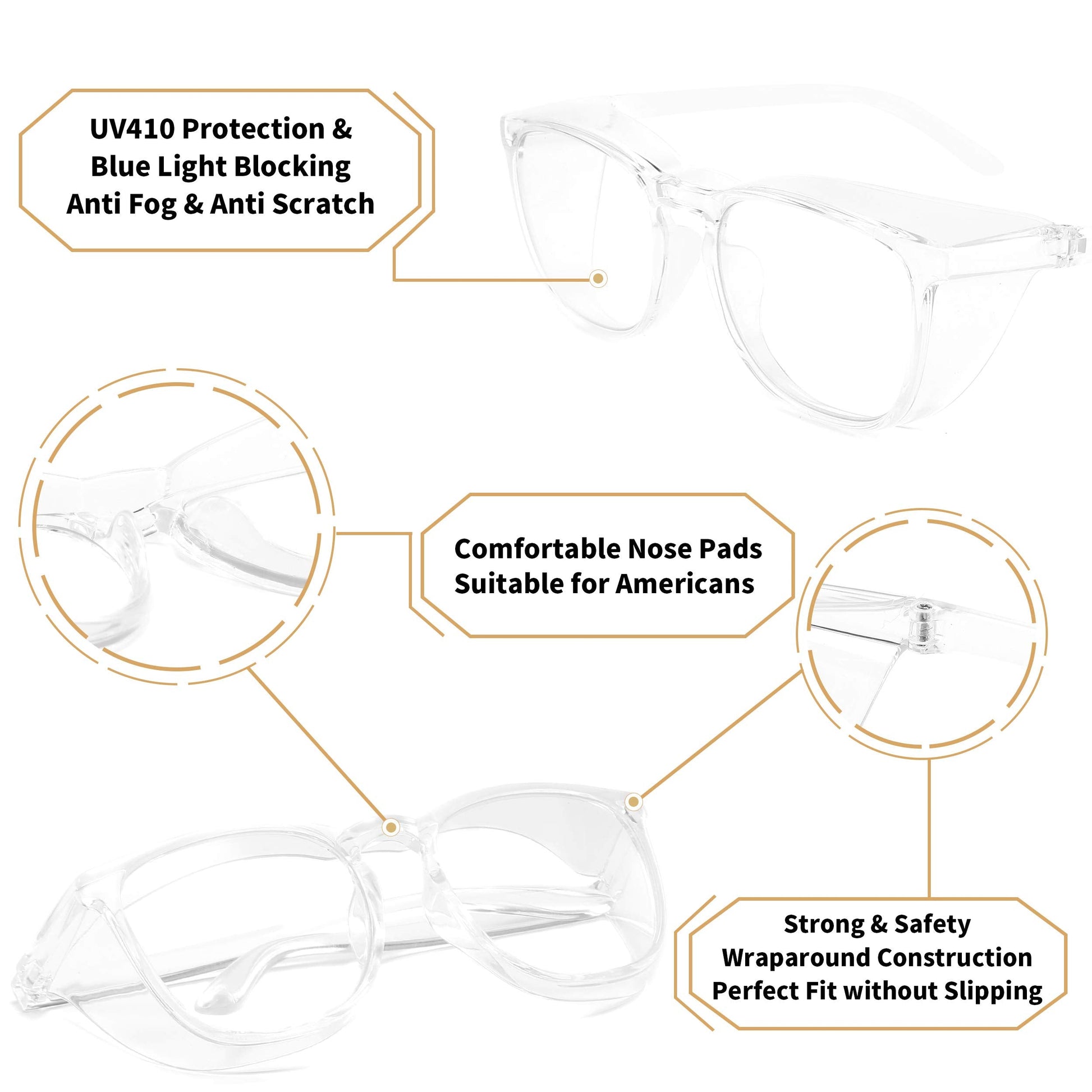 Alsenor Safety Glasses Anti Fog Goggles Protective Eyewear Blue Light Blocking Anti Dust UV Protection Glasses For Men Women (Transparent)