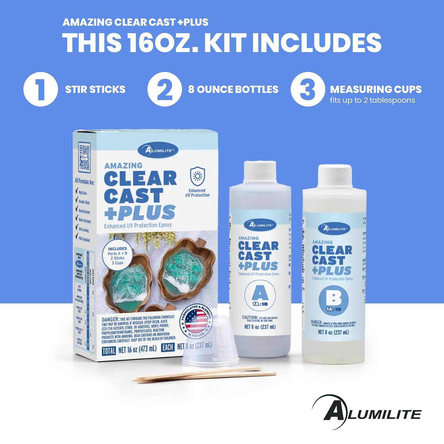 Alumilite Amazing Clear Cast Plus Epoxy Resin Kit for Making and Molding, UV, Plastic Coating, Casting for Countertops, Cups, Tumblers, High-Gloss, Glass Finish - 16 oz (8 oz Part A + 8 oz Part B)