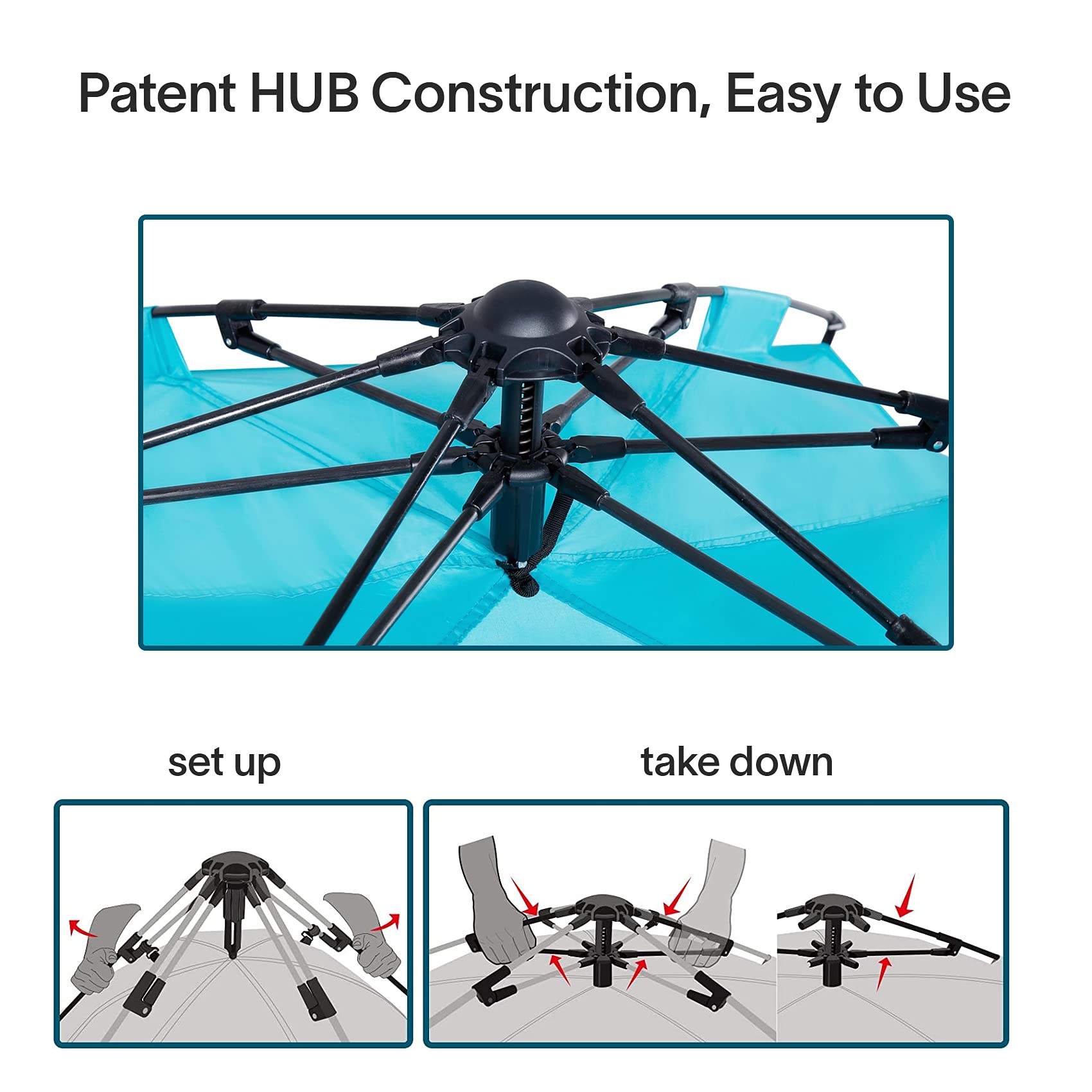 • ☀PATENTED AUTOMATIC OPEN sun shade beach tent on the Market : Patent pending HUB mechanic system on the top,which make tent open by itself effortless. Sturdy and rigid fibre glass frame supports the tent without worry of collapse.