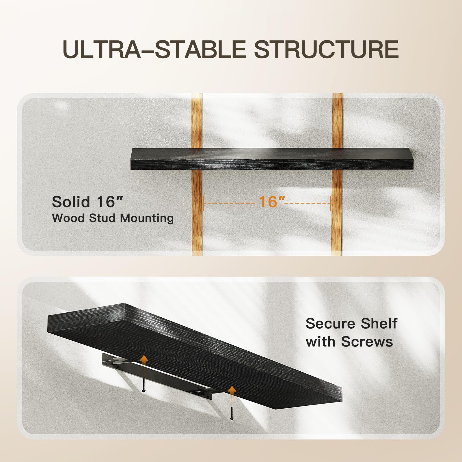 • Sleek Floating Design: Elevate your style with AMADA’s floating shelves, ideal for living rooms, bedrooms, or office spaces. Designed with modern, minimalist sophistication, the concealed brackets of our wall shelves help to maximize wall space for a seamless, streamlined look.