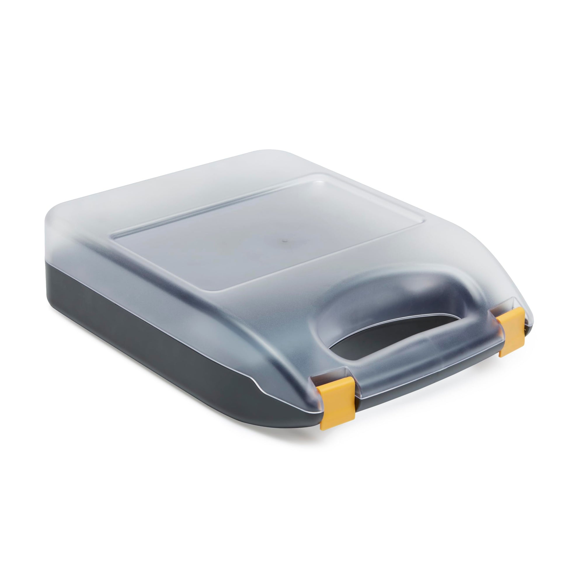 Amazon Basics Battery Organizer with Tester, Wall-Mounted Design, Handle Holds 110 Batteries, Clear/Black
