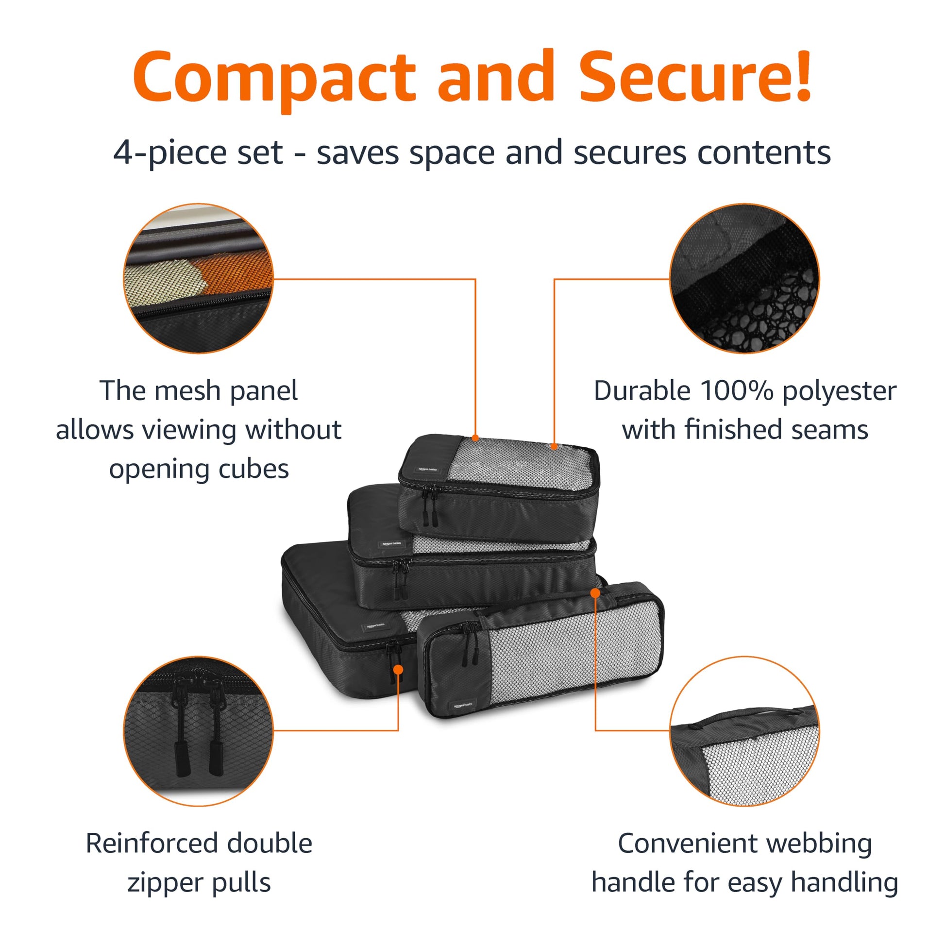 Amazon Basics 4 Piece Packing Travel Organizer Cubes Set, Black