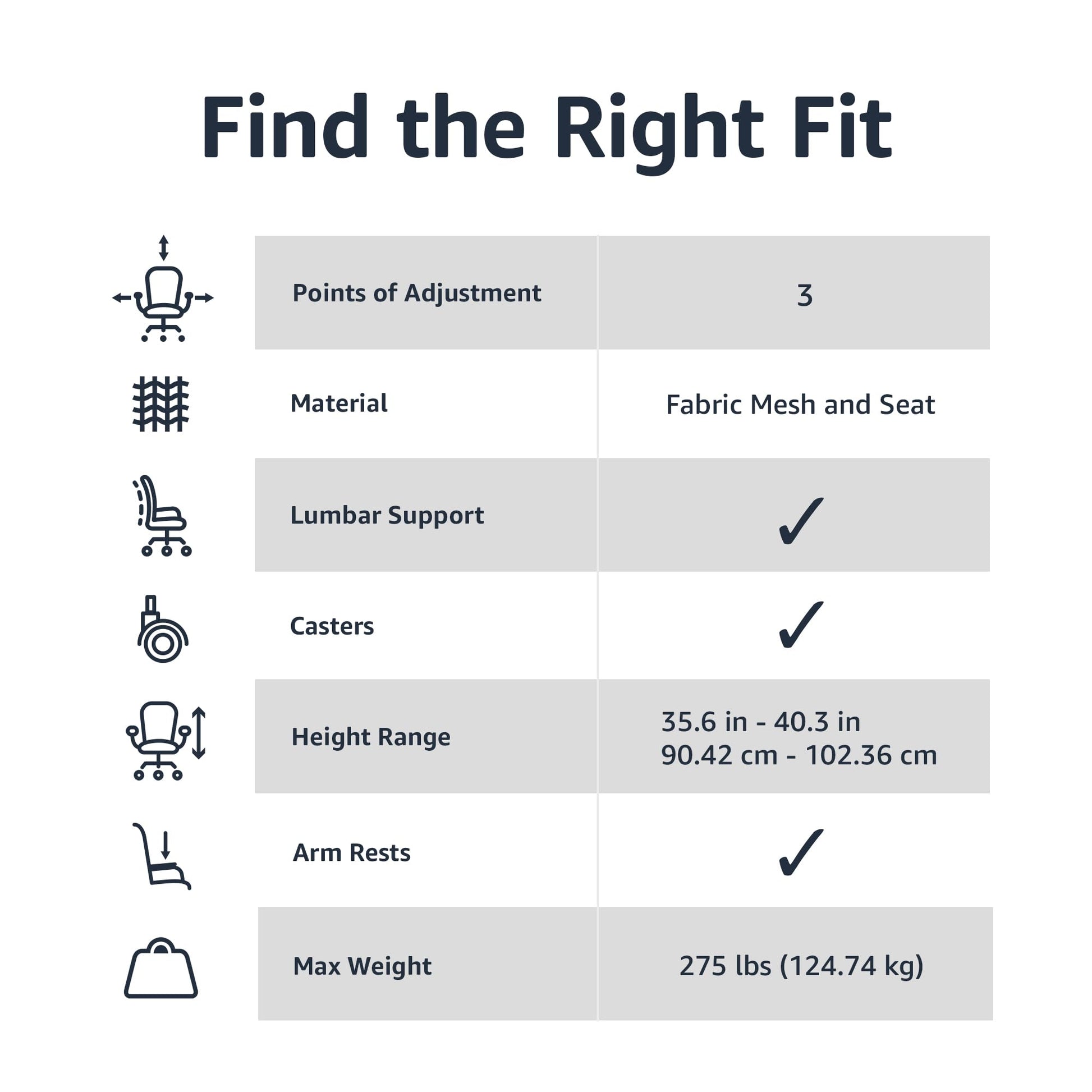 Amazon Basics Mesh Mid-Back Adjustable-Height 360-Degree Swivel Office Desk Chair with Armrests, Lumbar Support and Easy to Assemble, Black