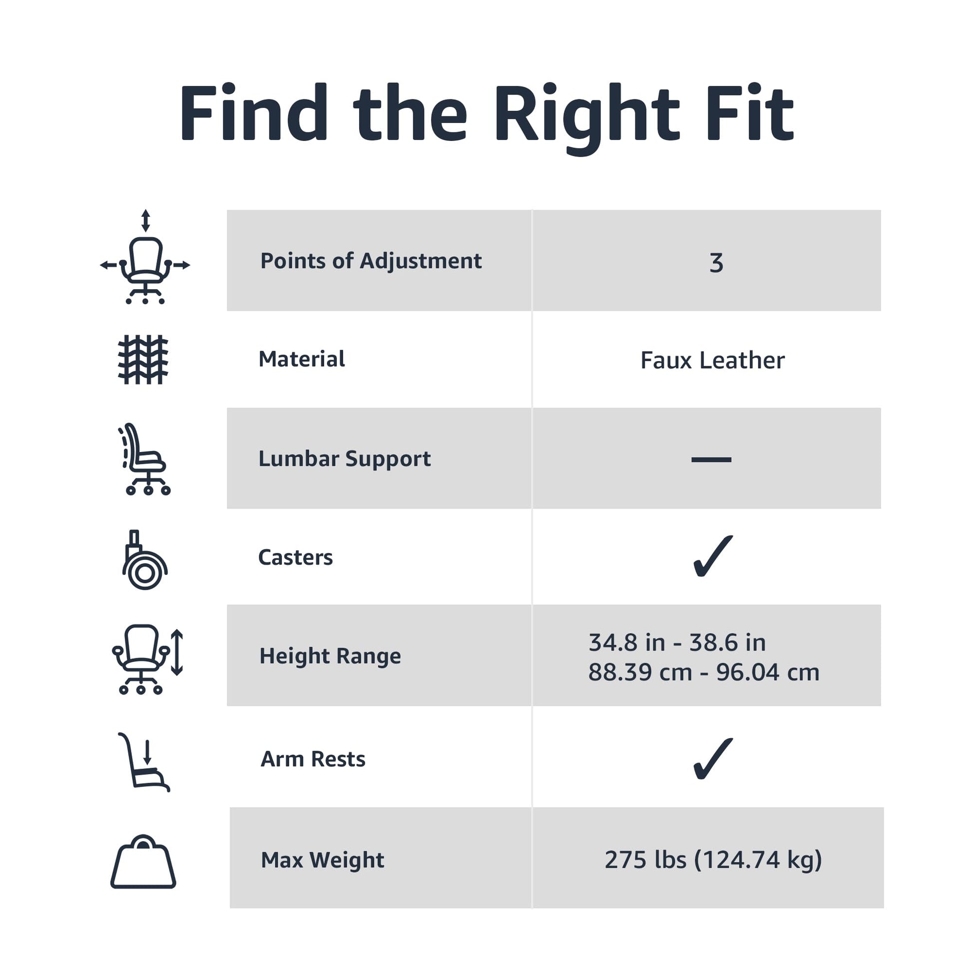 Amazon Basics Office Computer Task Desk Chair with Padded Armrests, Mid-Back, Adjustable, 360 Swivel, Rolling, 275 Pound Capacity, 24.2"D x 24"W x 34.8"H, Black Faux Leather