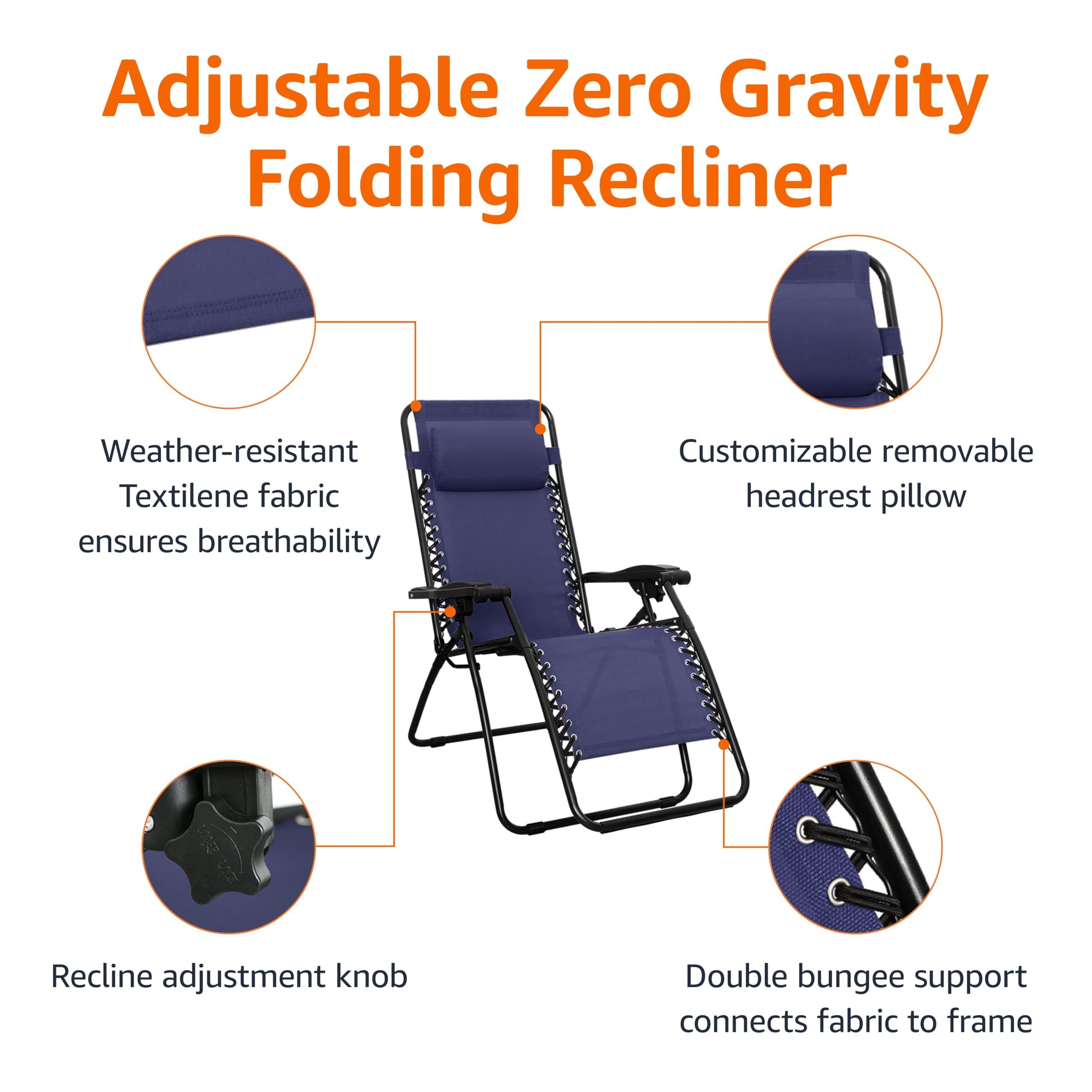 Amazon Basics Outdoor Textilene Adjustable Zero Gravity Folding Reclining Lounge Chair with Pillow, Navy Blue