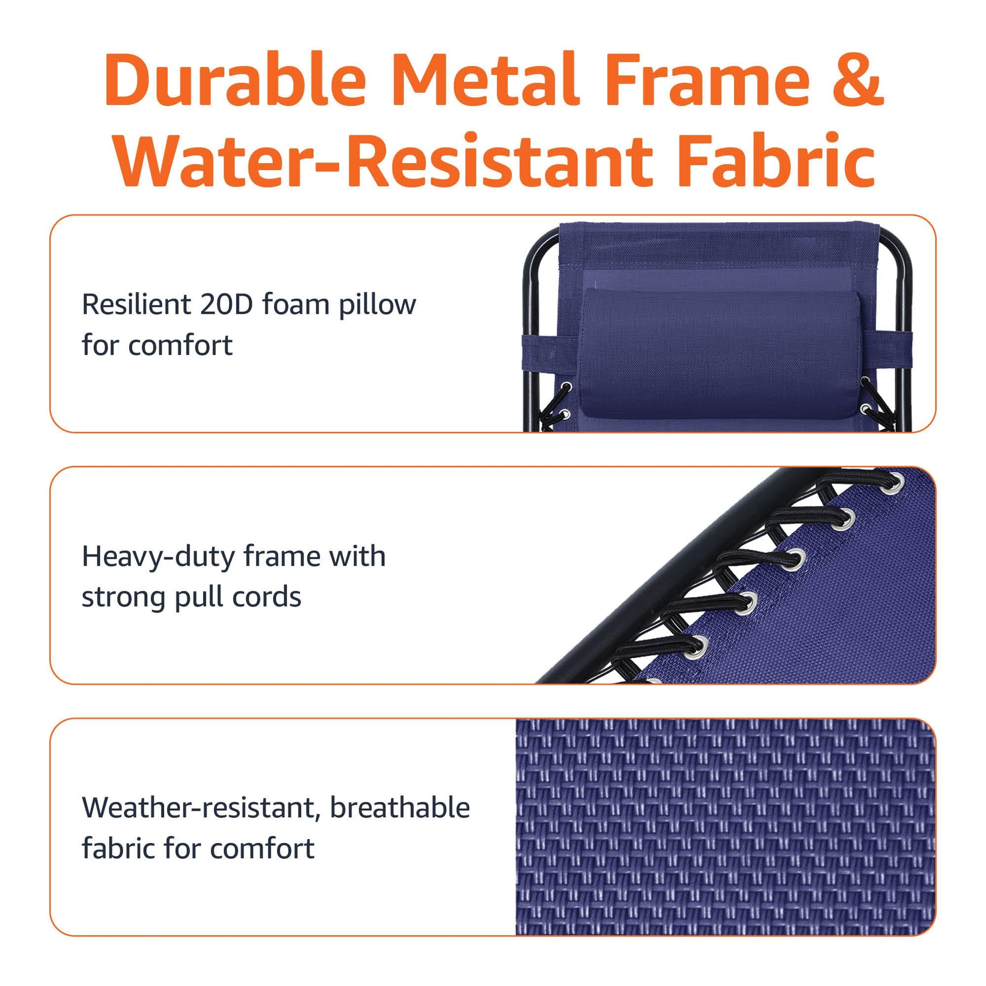 Amazon Basics Textilene Outdoor Adjustable Zero Gravity Folding Reclining Lounge Chair with Side table and Pillow - Pack of 2, Blue