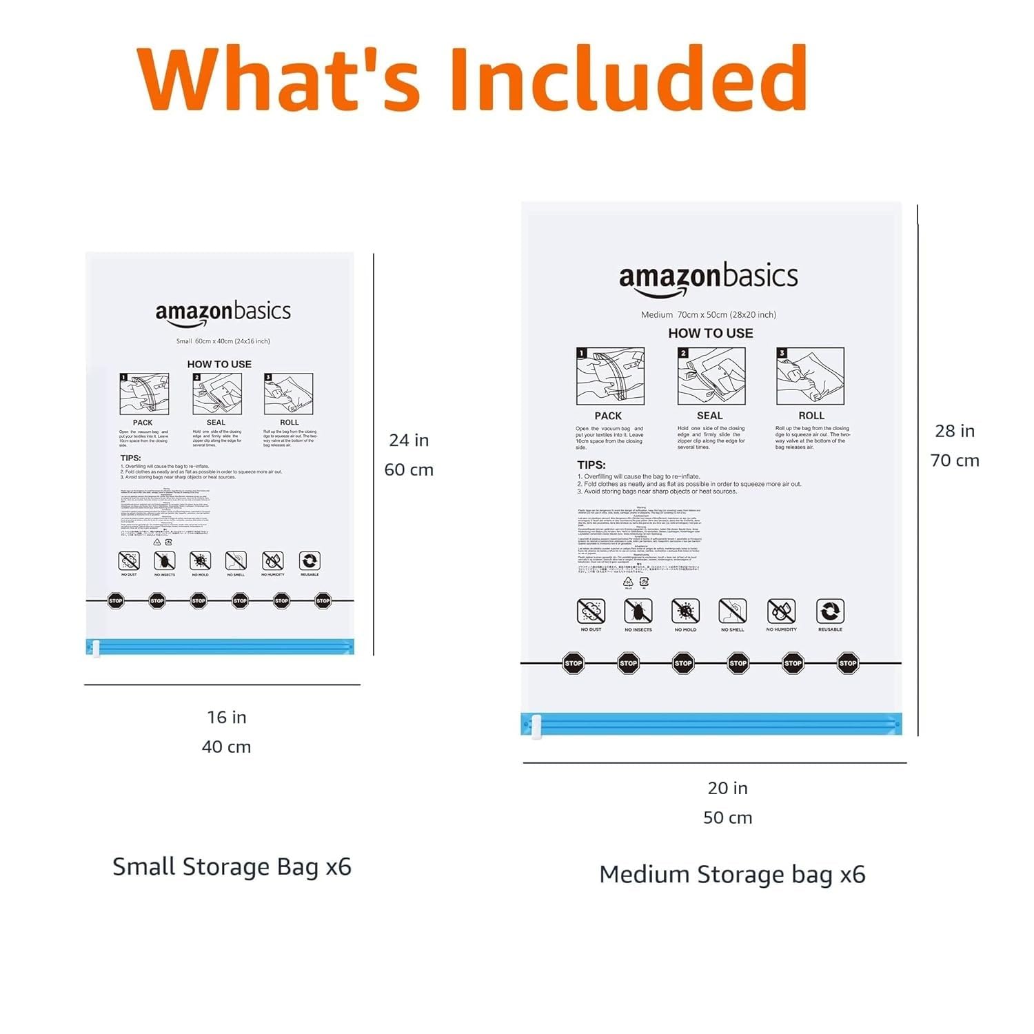 • INCLUDES: 6 Small bags (24 x 16 inches each) and 6 Medium bags (28 x 20 inches each)