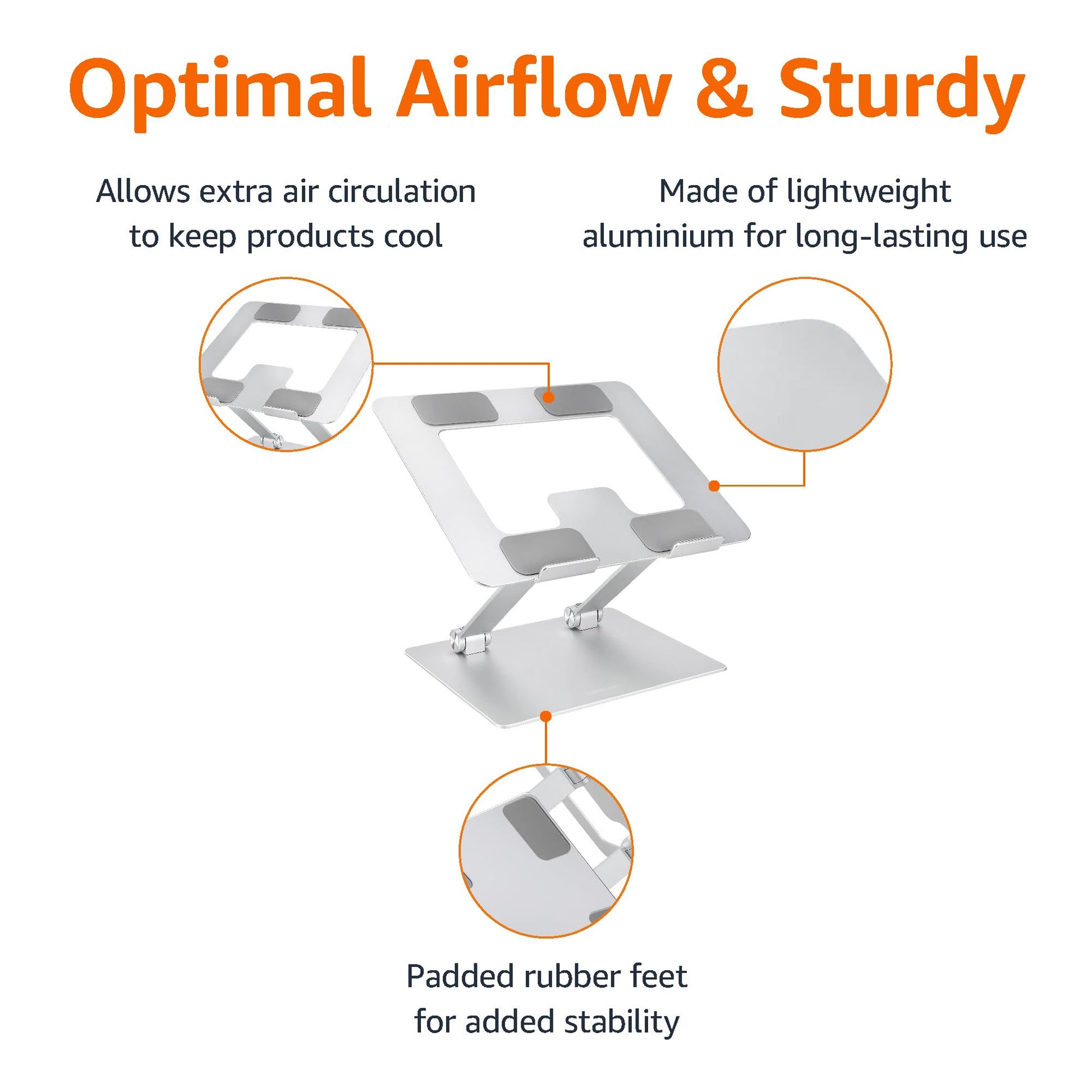 Amazon Basics Sturdy and Portable Ergonomic Laptop Stand for Desk, Adjustable Riser, Fits all Laptops and Notebooks up to 17.3 Inch, Silver, 10 x 8.7 x 6 in