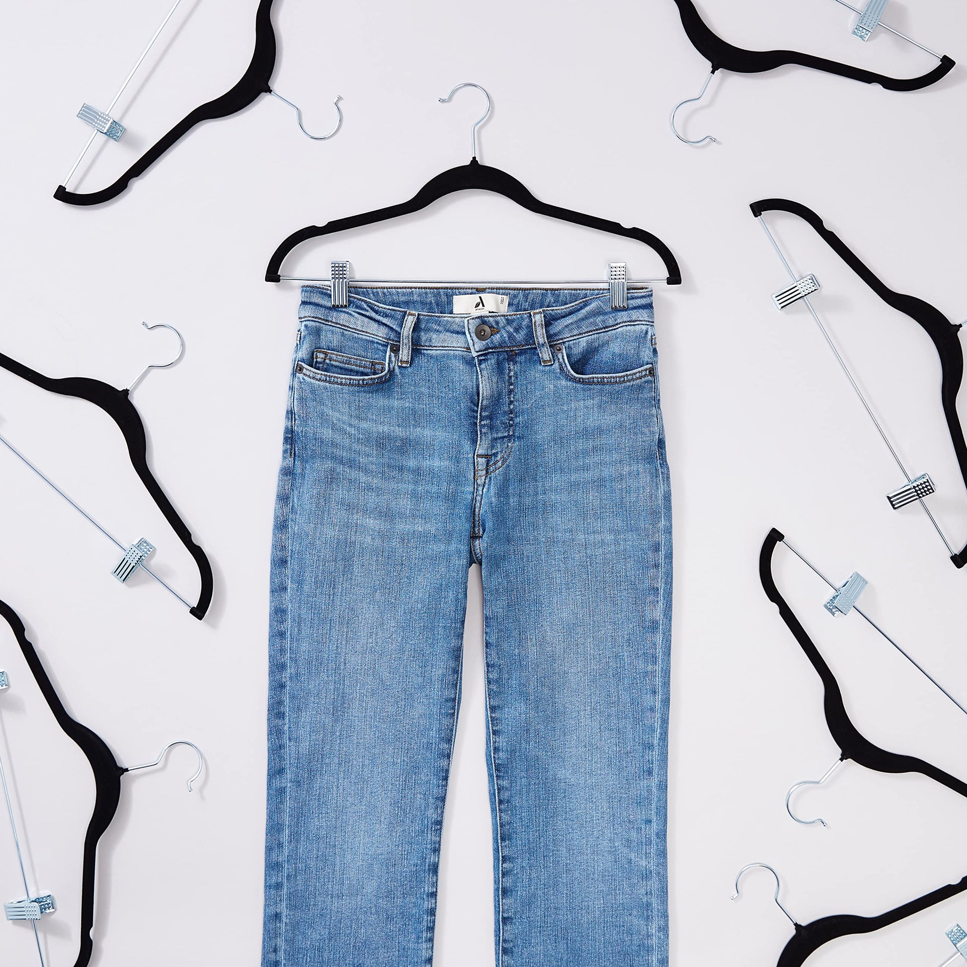 Amazon Basics Velvet Skirt Hangers with Clips, 24-Pack, Black