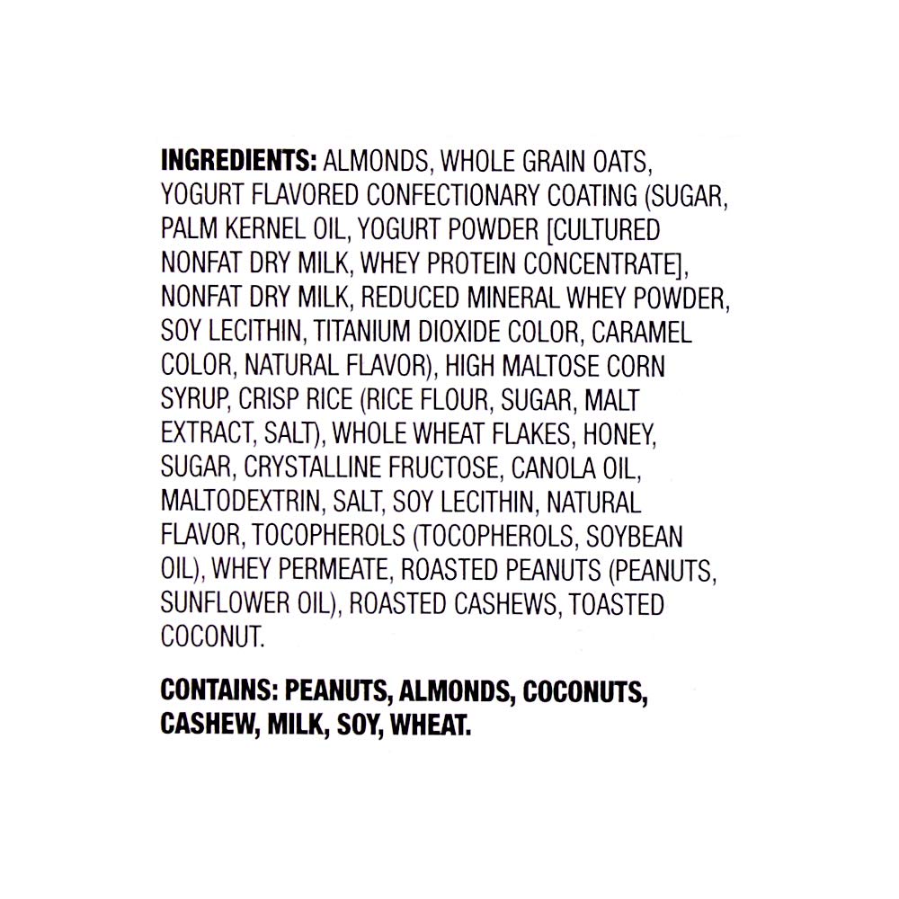 • Contains: Peanuts, Almonds, Coconut, Cashews, Milk, Soy, Wheat