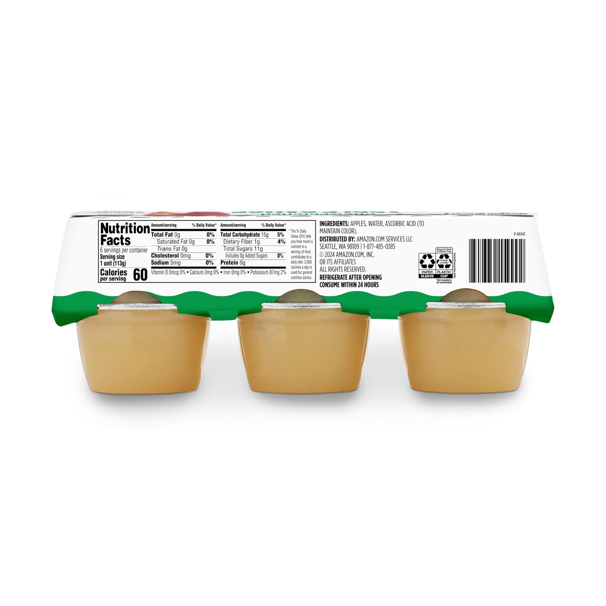• One 6 pack box of 4 ounce cups of Unsweetened Apple Sauce