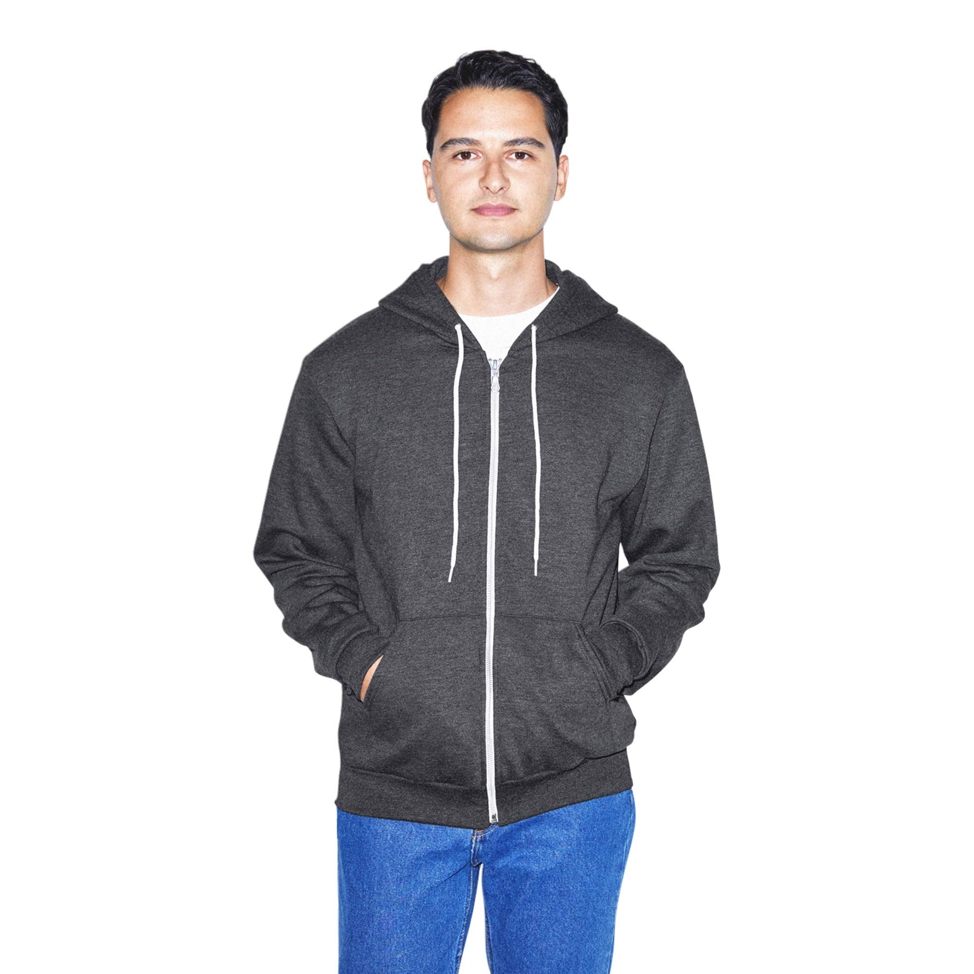 American Apparel Men's Flex Fleece Long Sleeve Zip Hoodie, Dark Heather Grey, Small