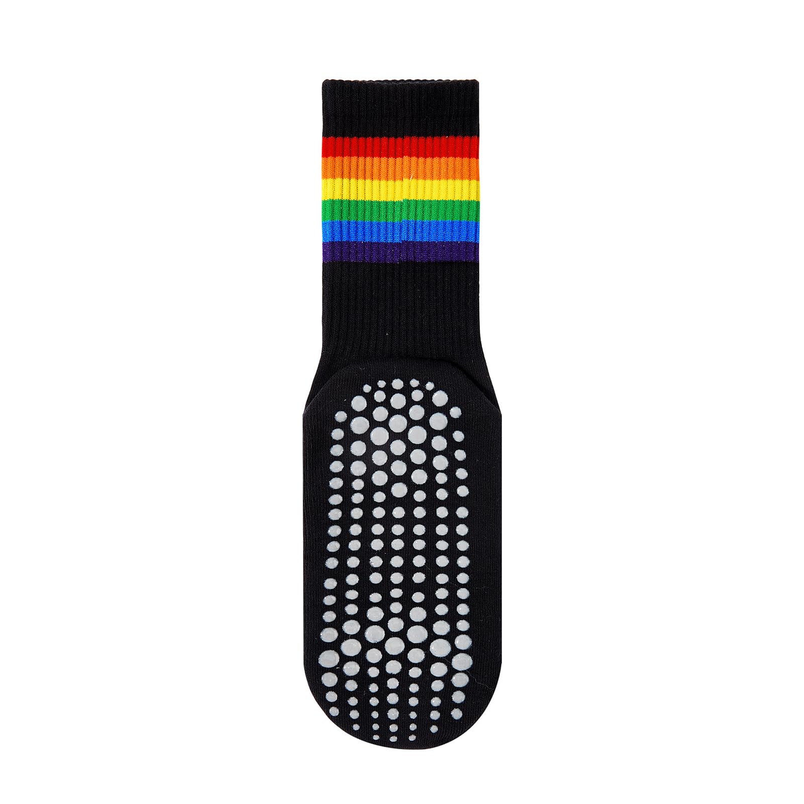 American Trends Pilates Socks with Grips for Women Pride Month Rainbow Outfit Yoga Non Slip Barre Socks Black Rainbow