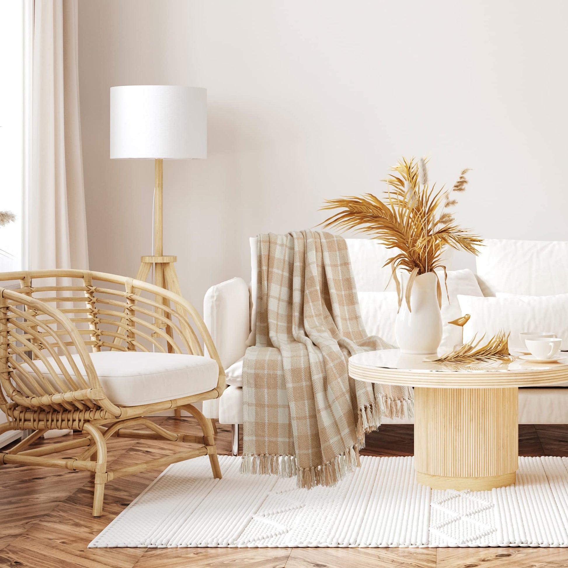 Americanflat 50x60 Throw Blanket - Soft and Breathable Cotton Throw Blanket for Couch, Bed, Chair - Decorative Blankets Perfect for Home, Office, or Outdoor Use - Ecru Camel Plaid Design
