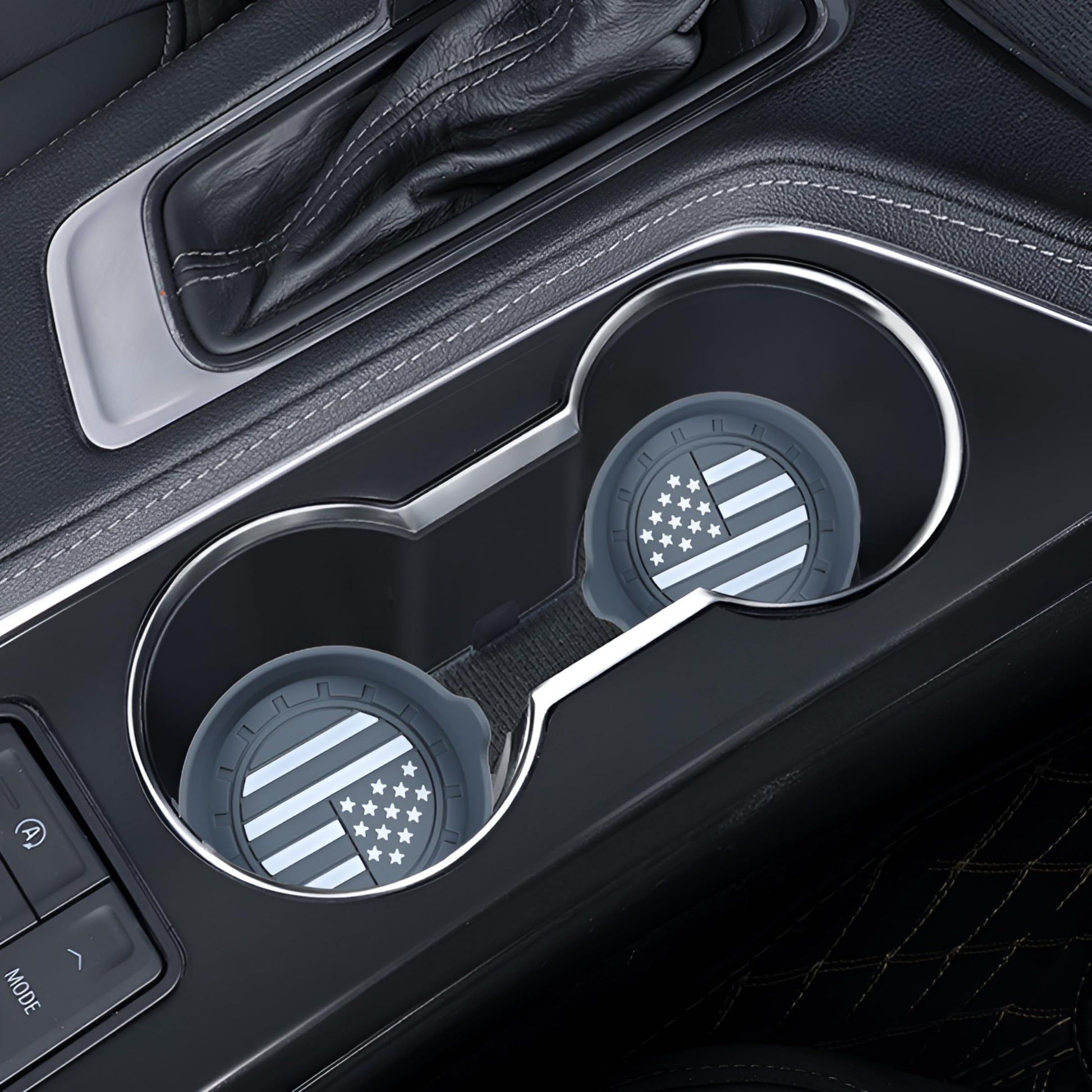 Amooca Car Cup Coaster Universal Non-Slip Silicone Cup Holder Insert Car Interior Accessories for Drink American Flag US Flag 4 Pack Grey