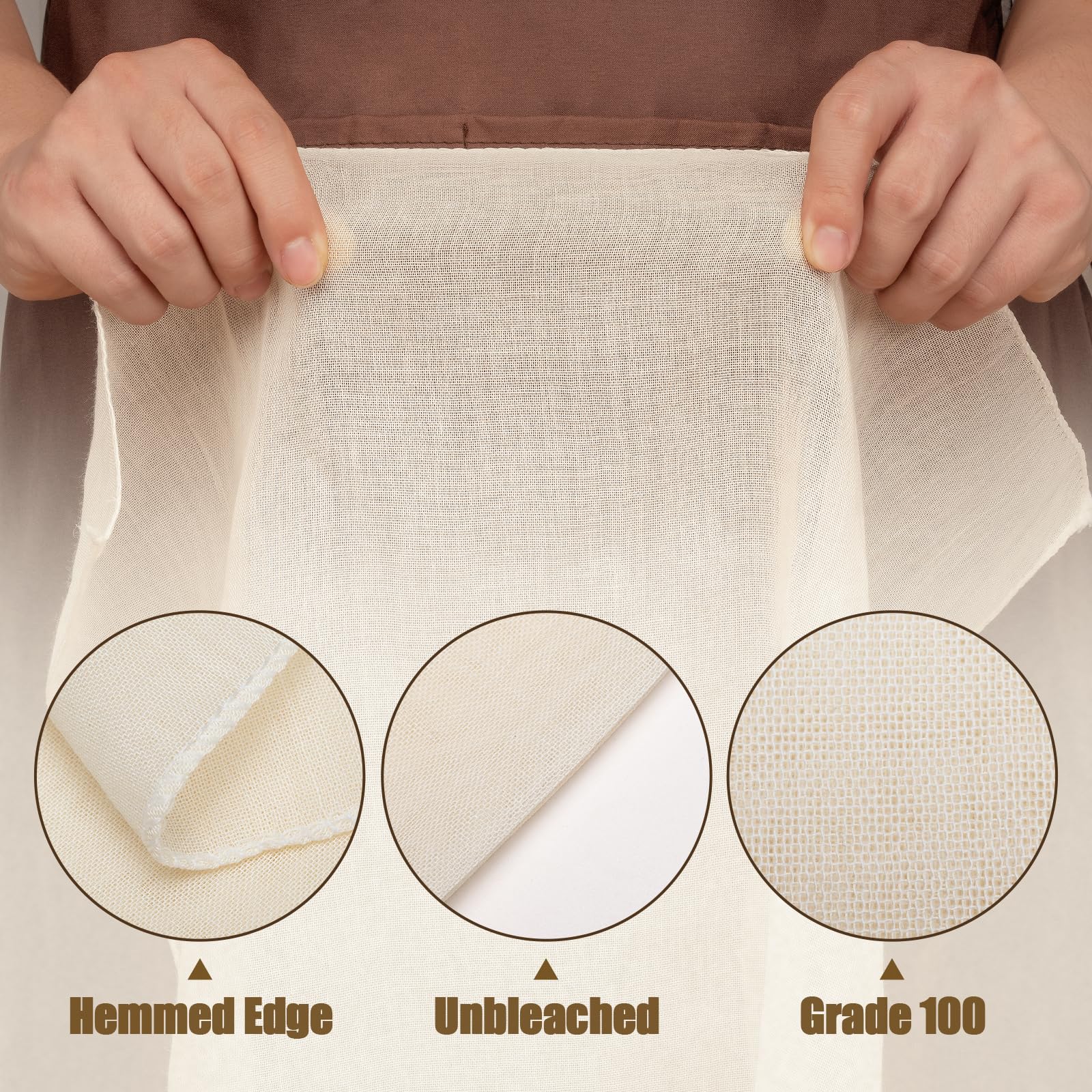 • HEMMED: The reinforced stitched edges ensures the straining cloth to be durable without lint shedding and prevent tearing easily. Just use the cheese cloths for cooking without worrying about threads falling into foods.