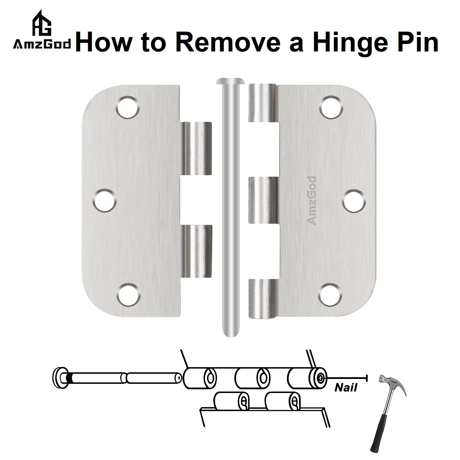 • 【STANDARD SIZE DOOR HINGES】: Experience the reliability and quality of our 3 1/2 x 3 1/2 x 2/25 inches nickel door hinges, complete with 5/8' rounded corners and 6 holes. This interior door hinge includes 3 hinges and 21 screws for effortless installation. Crafted from solid iron with a sleek brushed nickel finish, these silver hinges guarantee long-lasting durability. For optimal performance, we recommend using 3 hinges per interior and exterior door