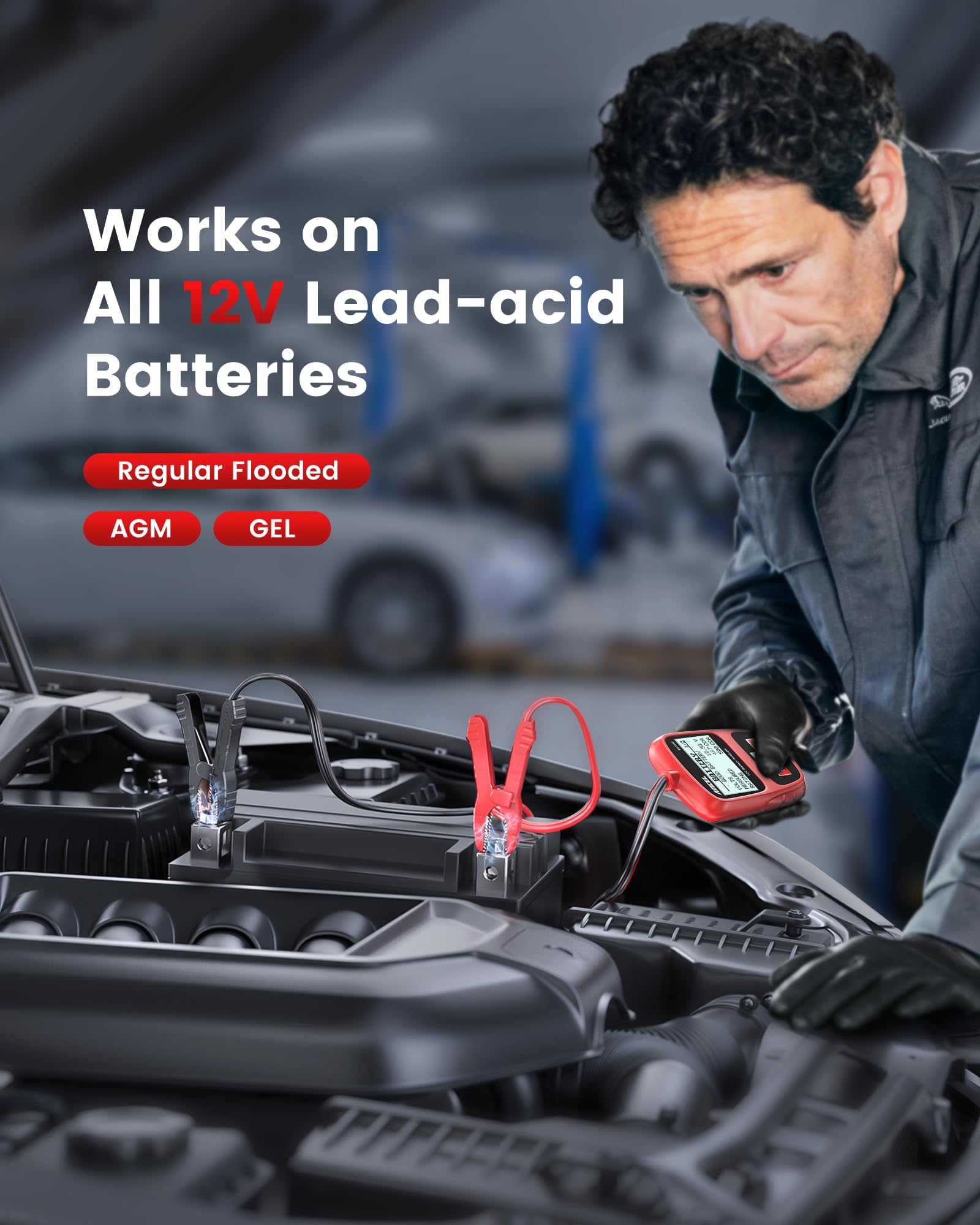 • 🔋【WIDER TESTING RANGE】Car battery tester works on 12V lead-acid batteries, Battery tester 12V automotive including regular flooded, AGM flat plate, AGM spiral, and GEL batteries for cars, RV, SUV, motorcycle, boats, light truck, and even golf carts. Battery testers give you an accurate result in merely seconds, such as CCA value, CCA rating, voltage, internal resistance, state of health, and state of charge, based on the rating standard of CCA, CA, MCA, JIS, DIN, IEC, EN and SAE