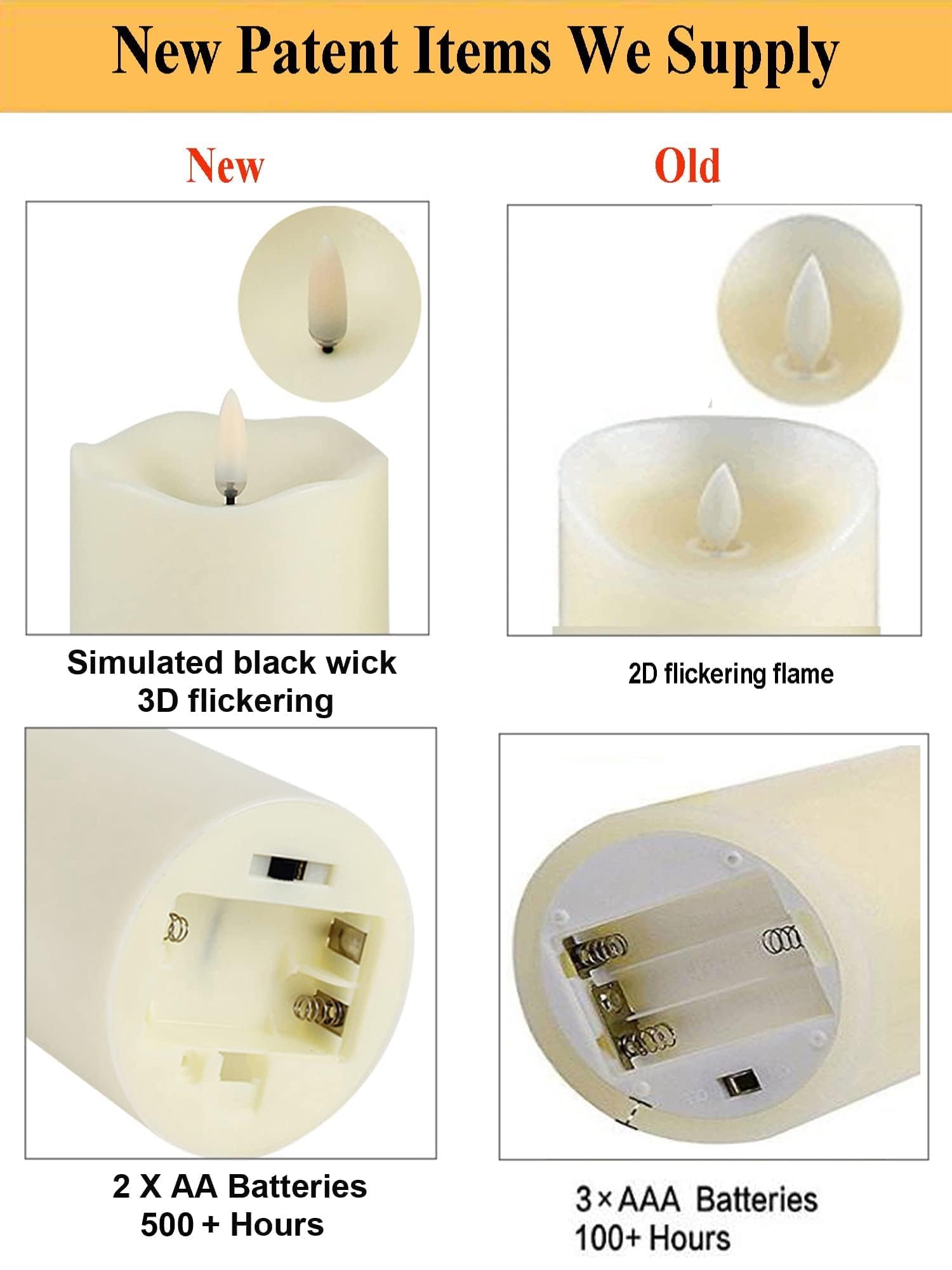 • Remote Candles - Plastic 3D led flame candle, simulated black wick - soothing romantic ambiance make electric candles like conventional pillar candles, so beautiful