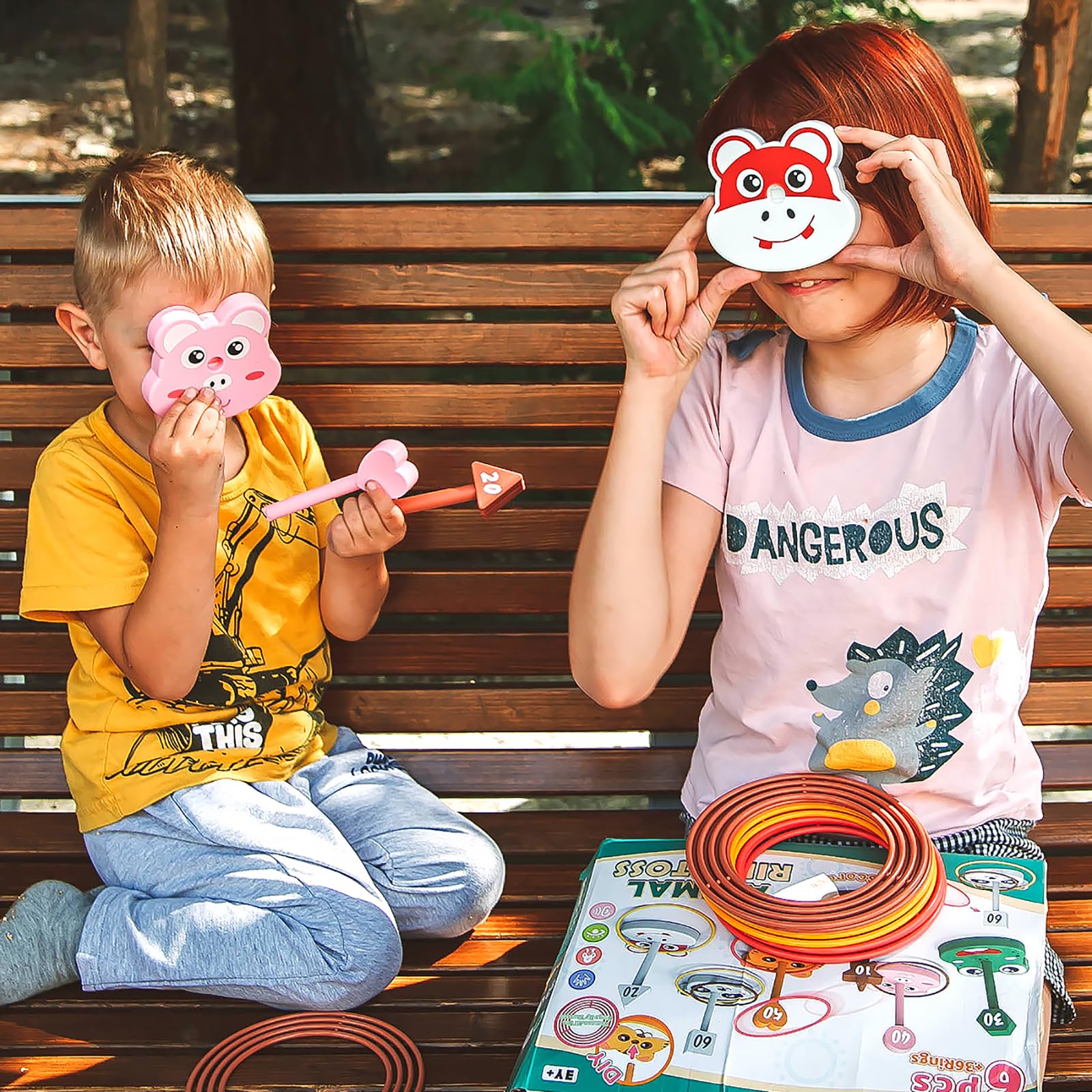 • 42 Pieces Combo Set: Comes with six colorful animal bases (pig, cat, bear, panda, frog, hippo) & poles, and 36 rings with different sizes. A fun indoor or outdoor game for single or several players