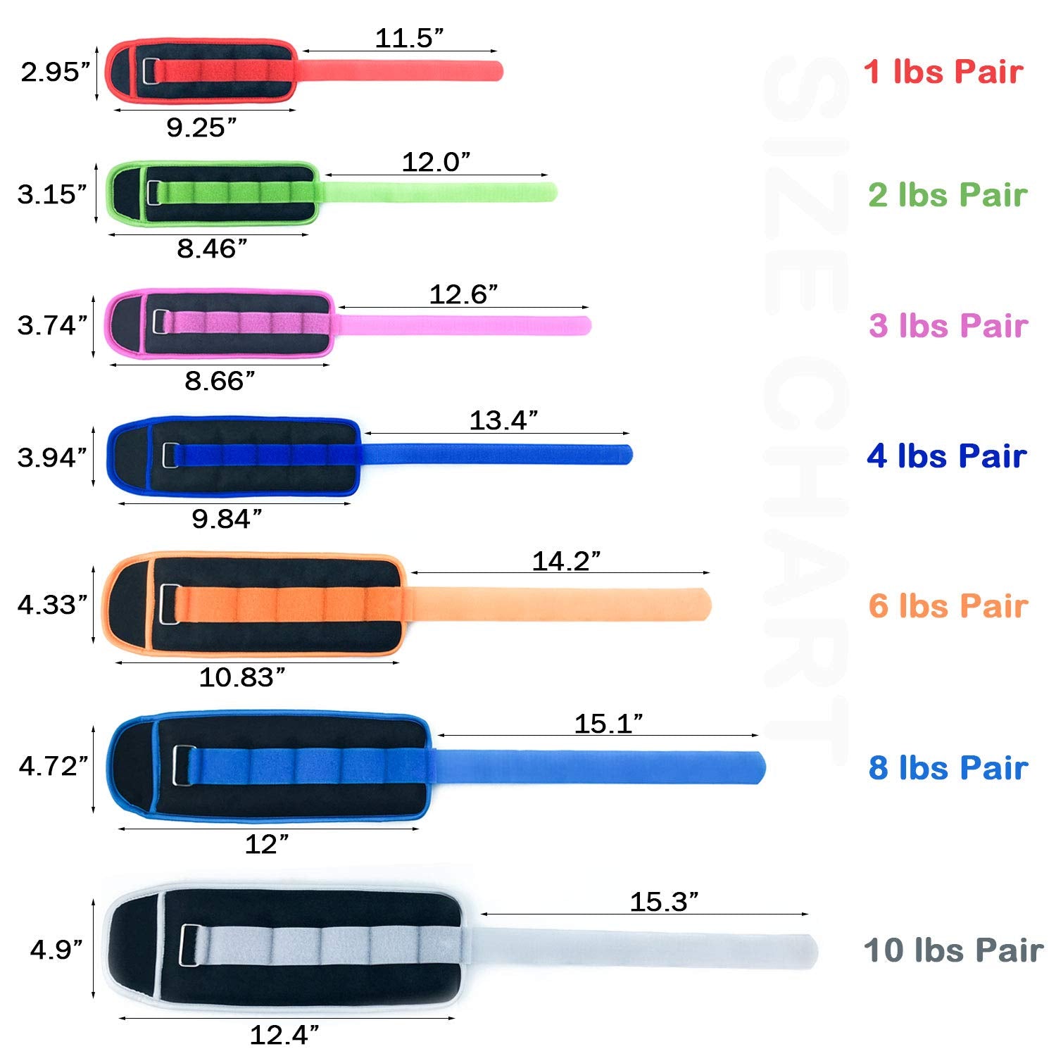Ankle/Wrist Weights for Women, Men, Kids - Arm Leg Weights Set with Adjustable Strap - Running, Jogging, Gymnastic, Physical Therapy, Fitness - Choice of 1 lb 2 lbs 3 lbs 4 lbs 6 lbs 8 lbs 10 lbs