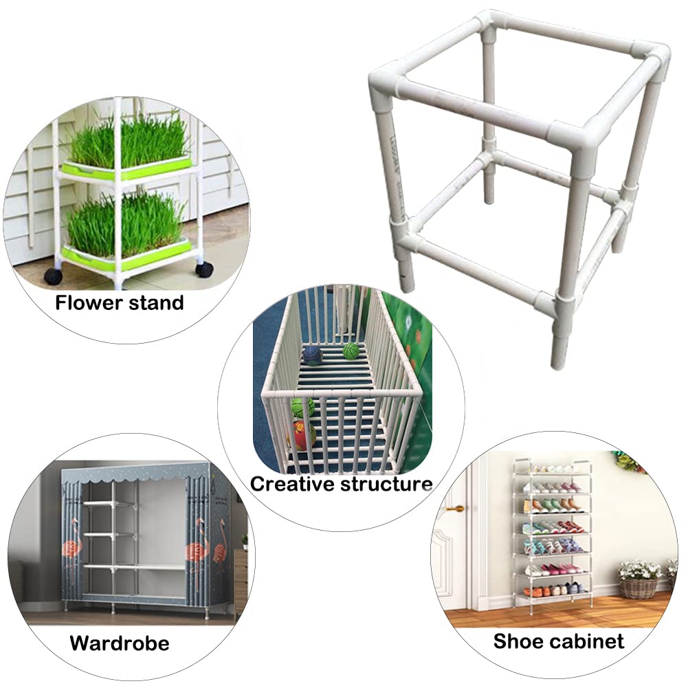 • Application- for building any type of structure out of PVC pipe, such as cat enclosure, shelves, pool products, chairs, desks, puppy play cube or puppy gym, garden supports structures and so on