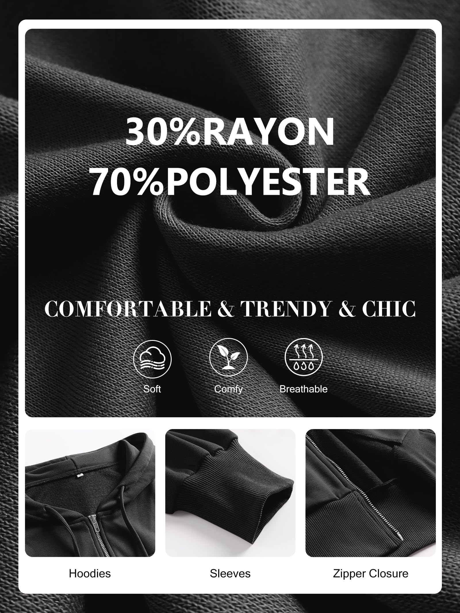 ANRABESS Women's Zip Up Hoodies Cropped Sweatshirts Casual Zip Jackets 2025 Fashion Trendy Fall Outfits Black Large