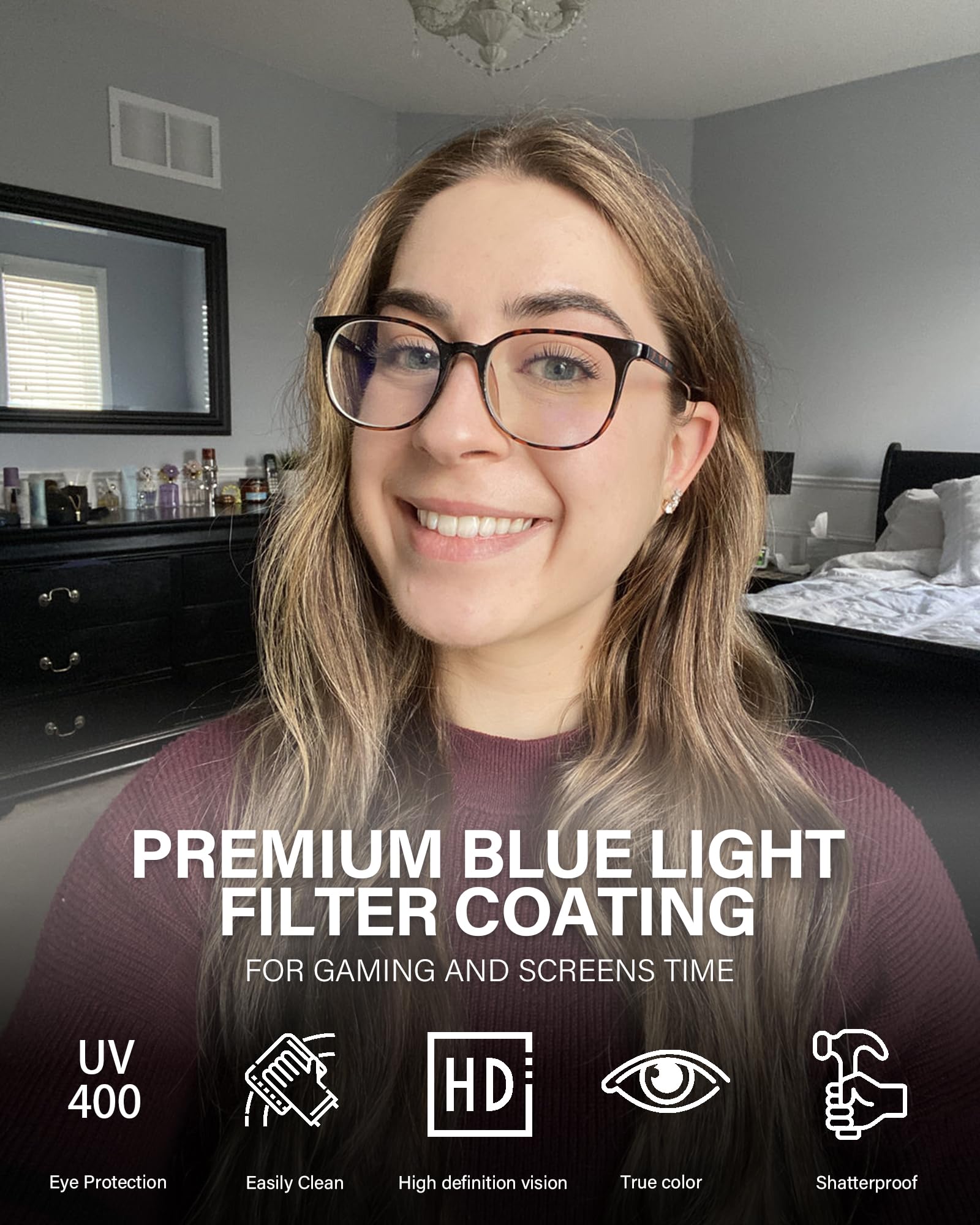 • Effective Blue Light Protection: Designed to protect your eyes from harmful blue light, these glasses utilize advanced technology to filter out the blue light emitted by digital screens. By reducing eye strain and fatigue, they promote comfortable and healthier screen time