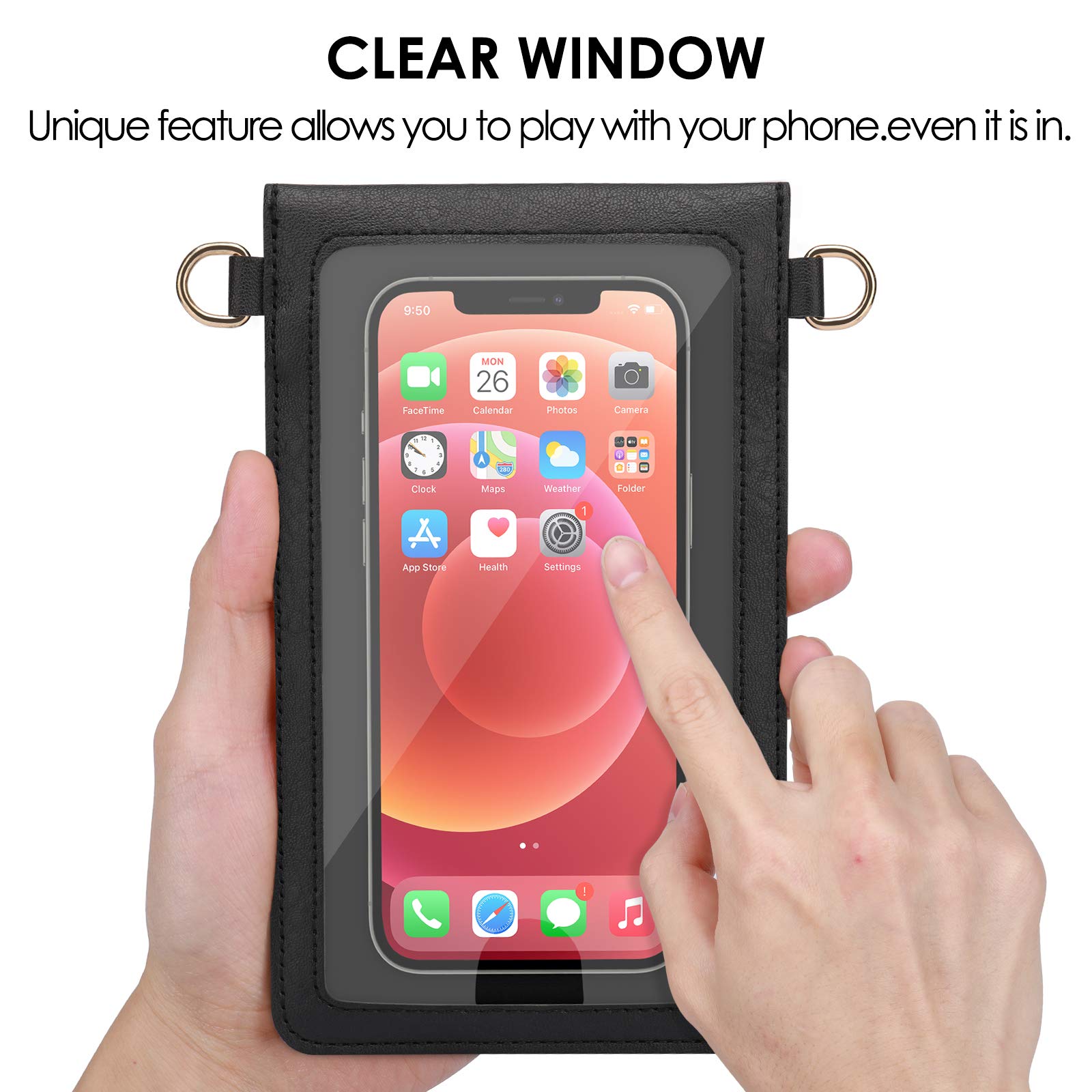 • Cell phone crossbody bag for women is made by PU leather and polyster Linning. Our phone bag is surrounded by plastic windows, which protect your mobile phone from being damaged by dust and sewage. The hollow desingn crossbody phone purse, conducive to the ventilation of the mobile phone and prevents heat generation.