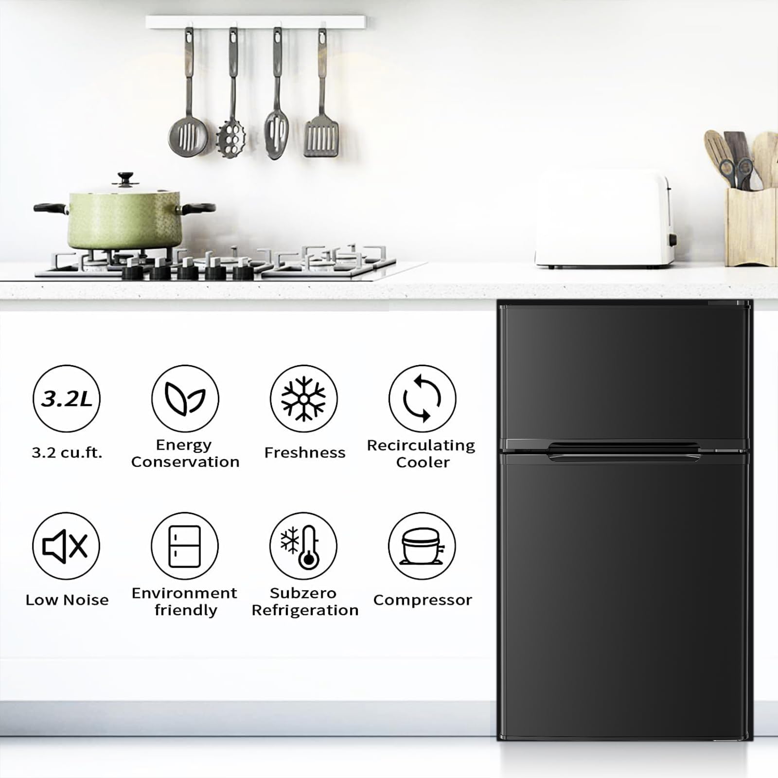 Antarctic Star Mini Compact Refrigerator, 3.2 Cu.Ft. Separate Freezer Double 2-Door Adjustable Removable Shelves for Apartment/Dorm/Office,BLACK