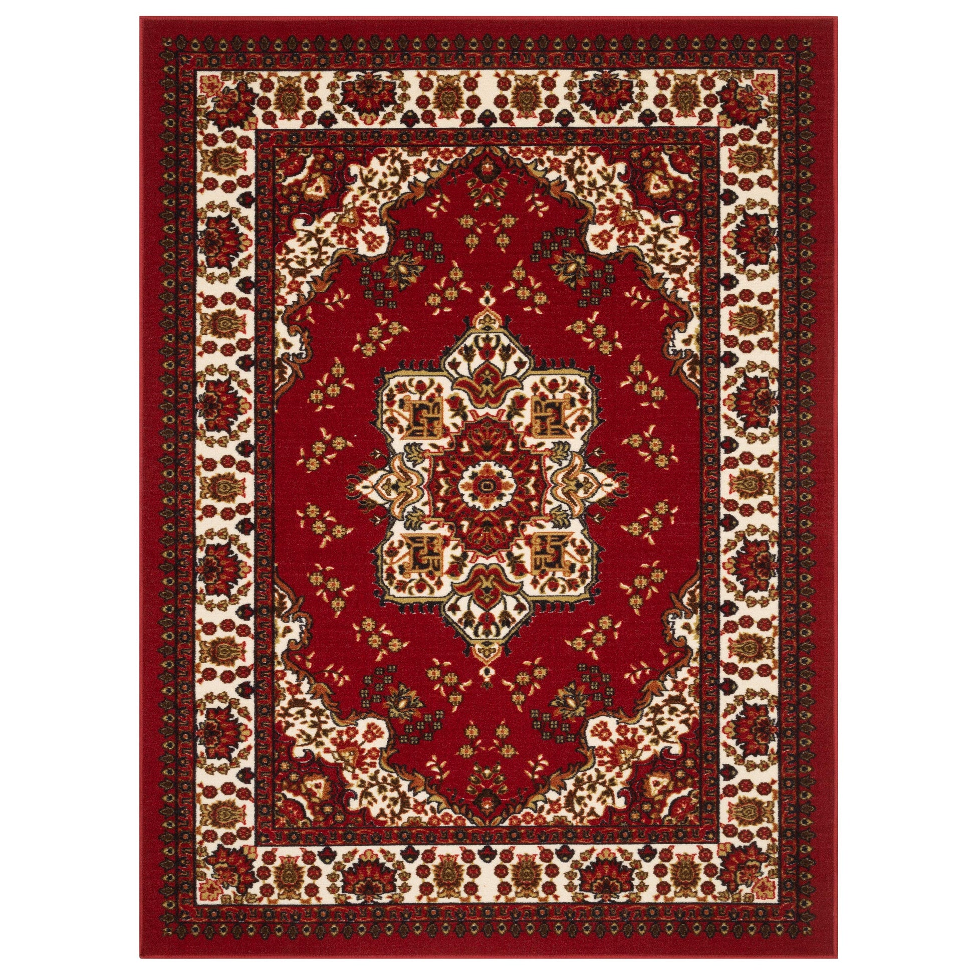Antep Rugs Alfombras Oriental Traditional 5x7 Non-Skid (Non-Slip) Low Profile Pile Rubber Backing Indoor Area Rugs (Maroon, 5' x 7')