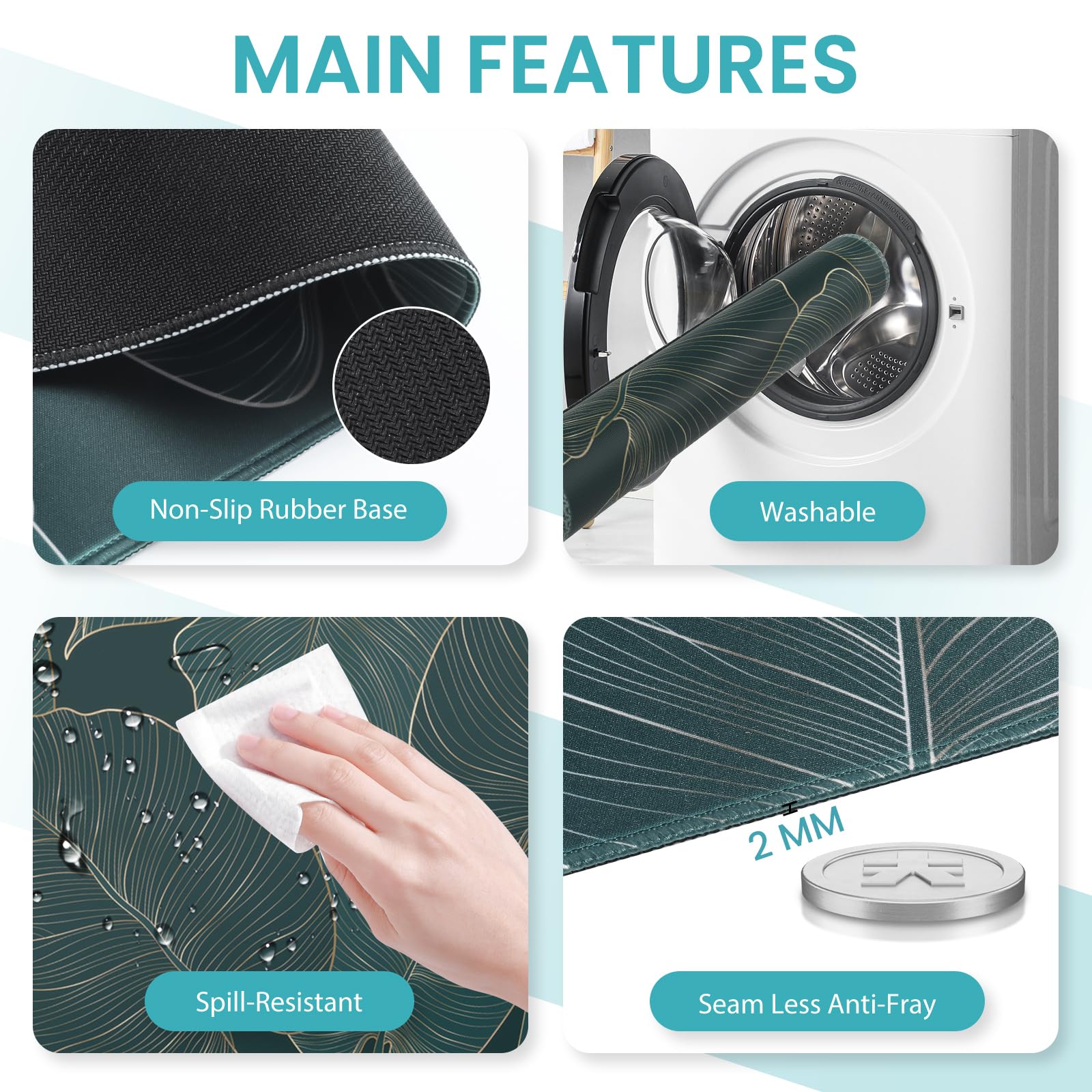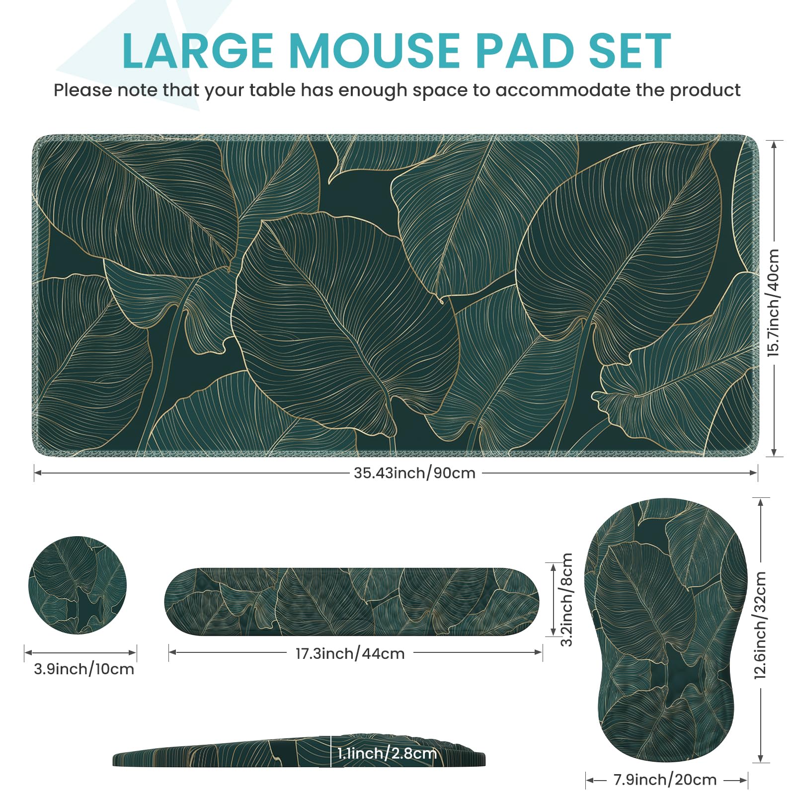 AnyShock 4 in 1Desk Mat for Keyboard and Mouse, Ergonomic Green Mouse Pad with Memory Foam Wrist Rest, Large Desk Pad Mat, Soft Wrist Support for Keyboard (Palm Leaves)