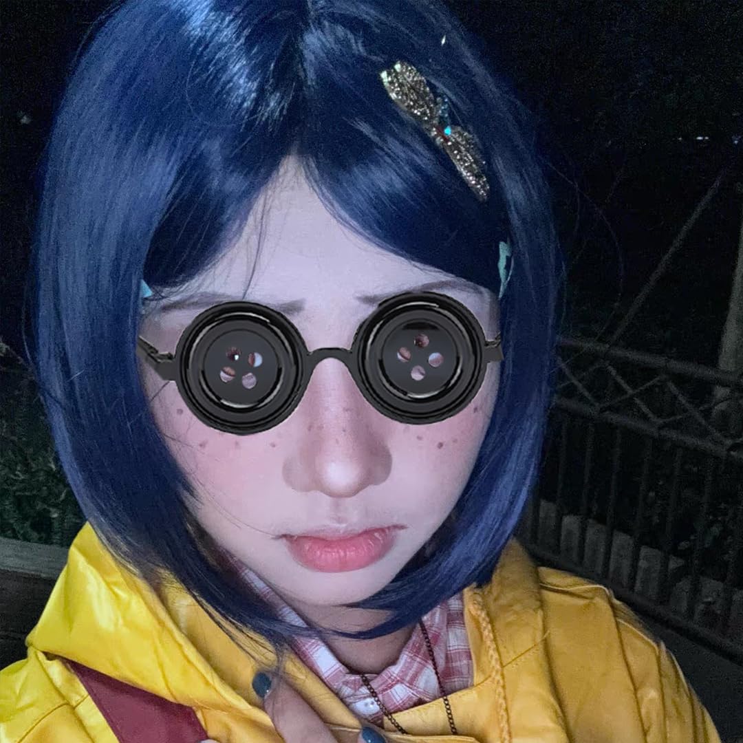 ANZWTLOYY Button Eyes Glasses Horror Movie Merch Merchandise Halloween Costume Accessories Age 6-20 (Black)