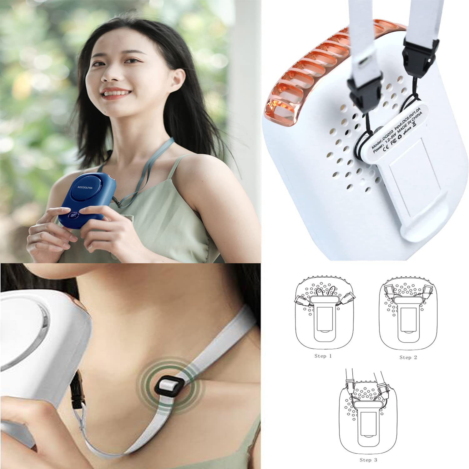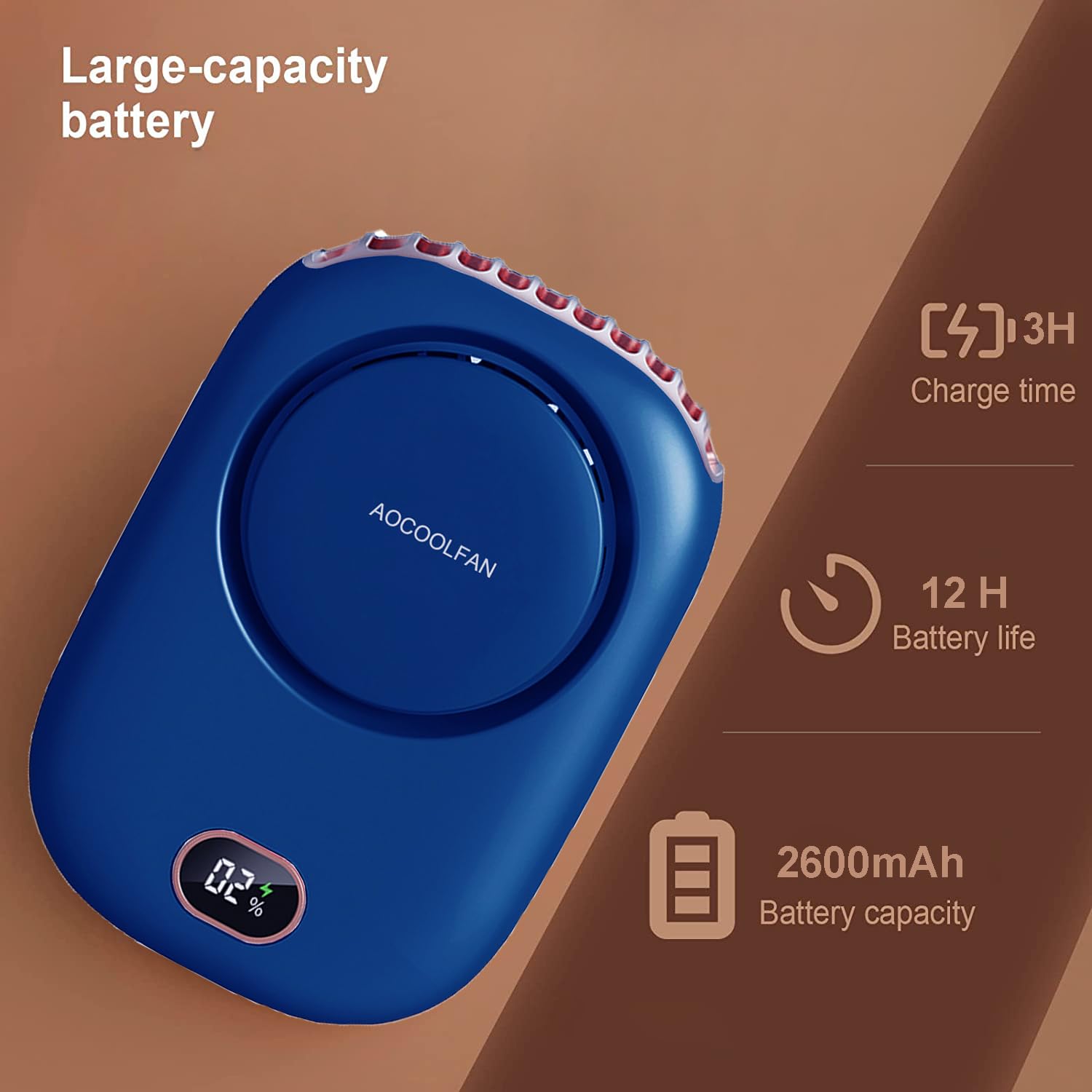 AOCOOLFAN Portable Neck Fan, Mini Small Personal Handheld Fan USB Rechargeable 3 Speed for Girls Boys Woman Eyelash Travel Home Office Outdoor (navy blue)