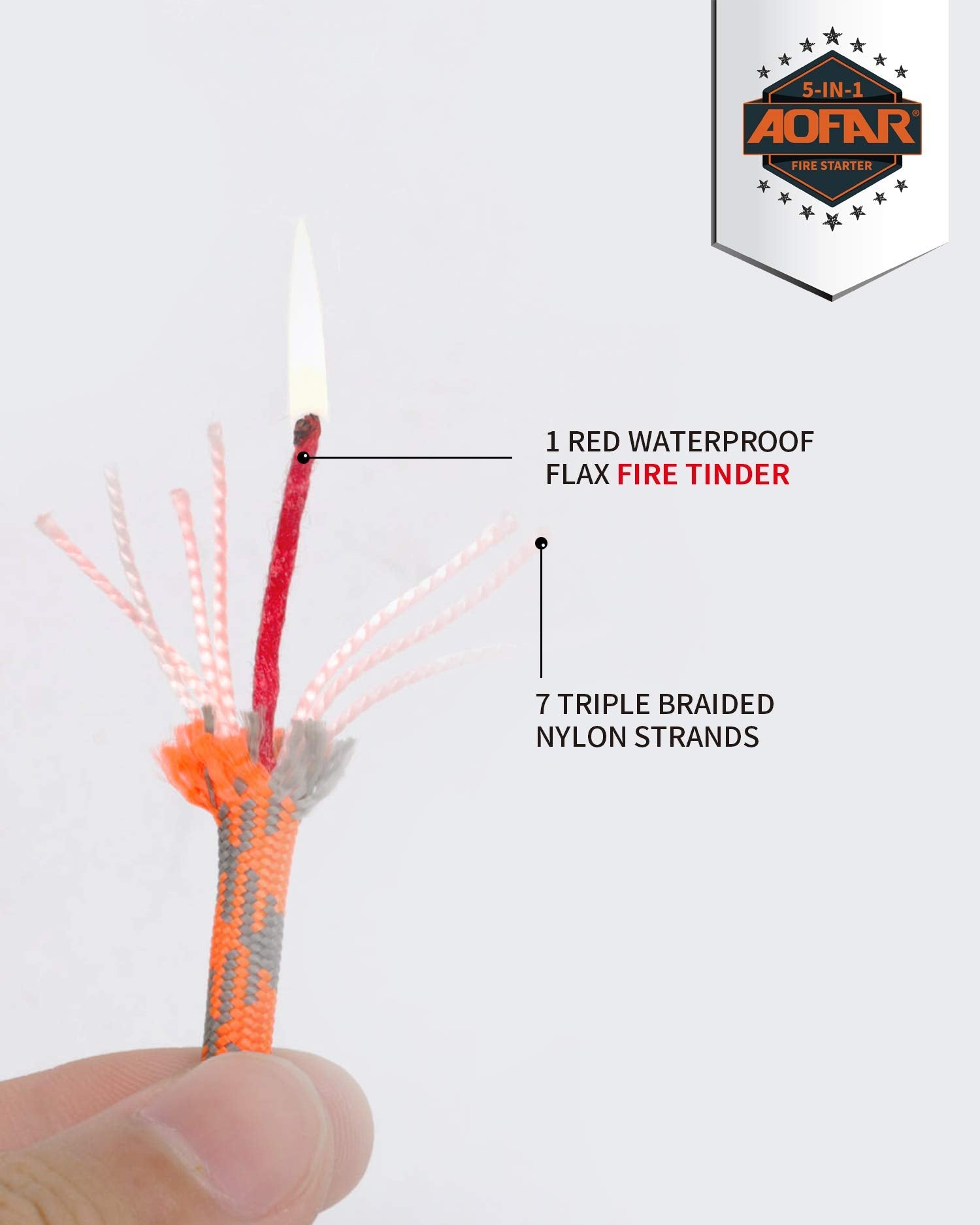 • HELPFUL:The red waxed flax in Paracord waterproof fire tinder can make instant fire even in heavy rain.