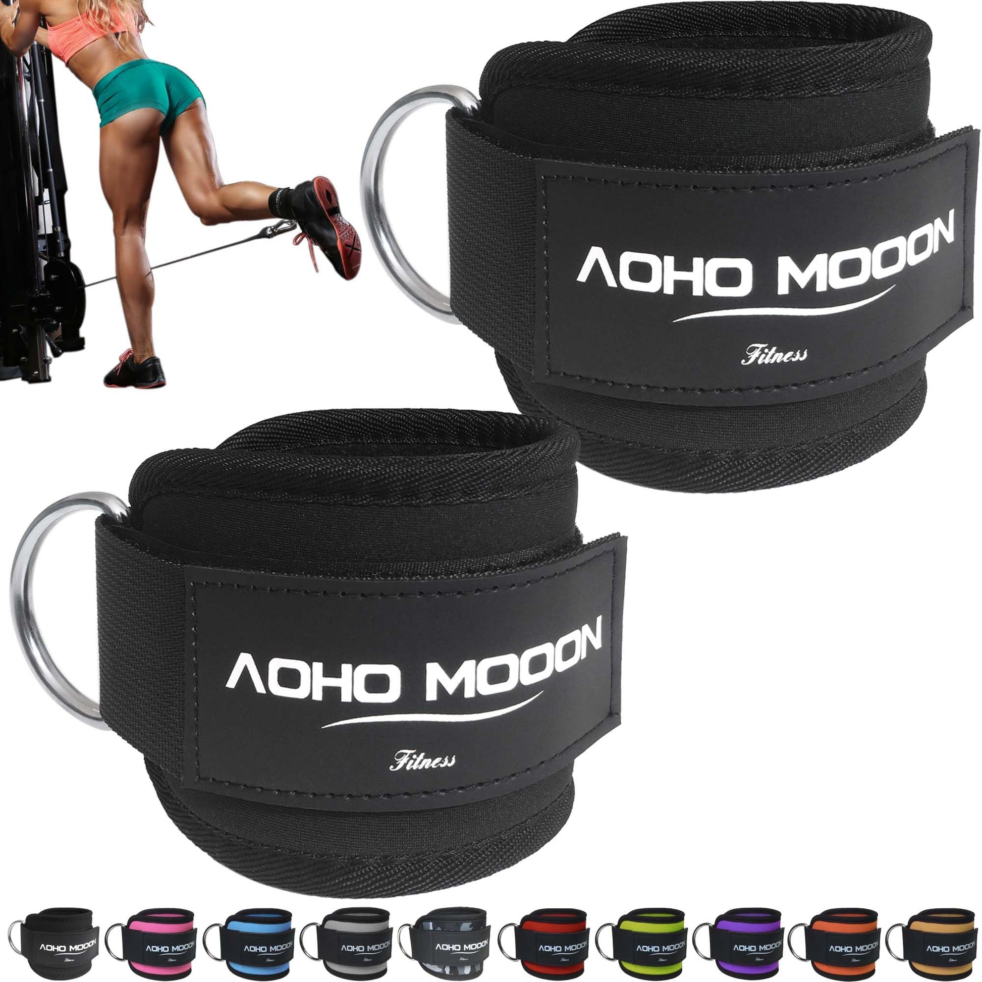 AOHO MOOON (Pair Comfortable Adjustable Ankle Straps for Cable Machines Women