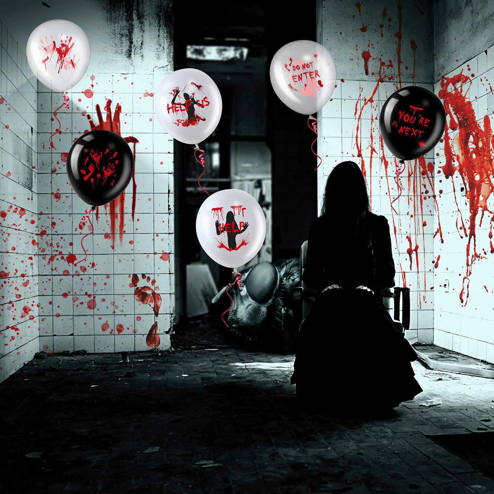 Aoriher 45 Pcs Scary Halloween Balloons 12 Inches Bloody Latex Balloons Eye Blood Splatter Decorations Horror Zombie Decor for Birthday Vampire Haunted House Party Supplies(Scared Style)