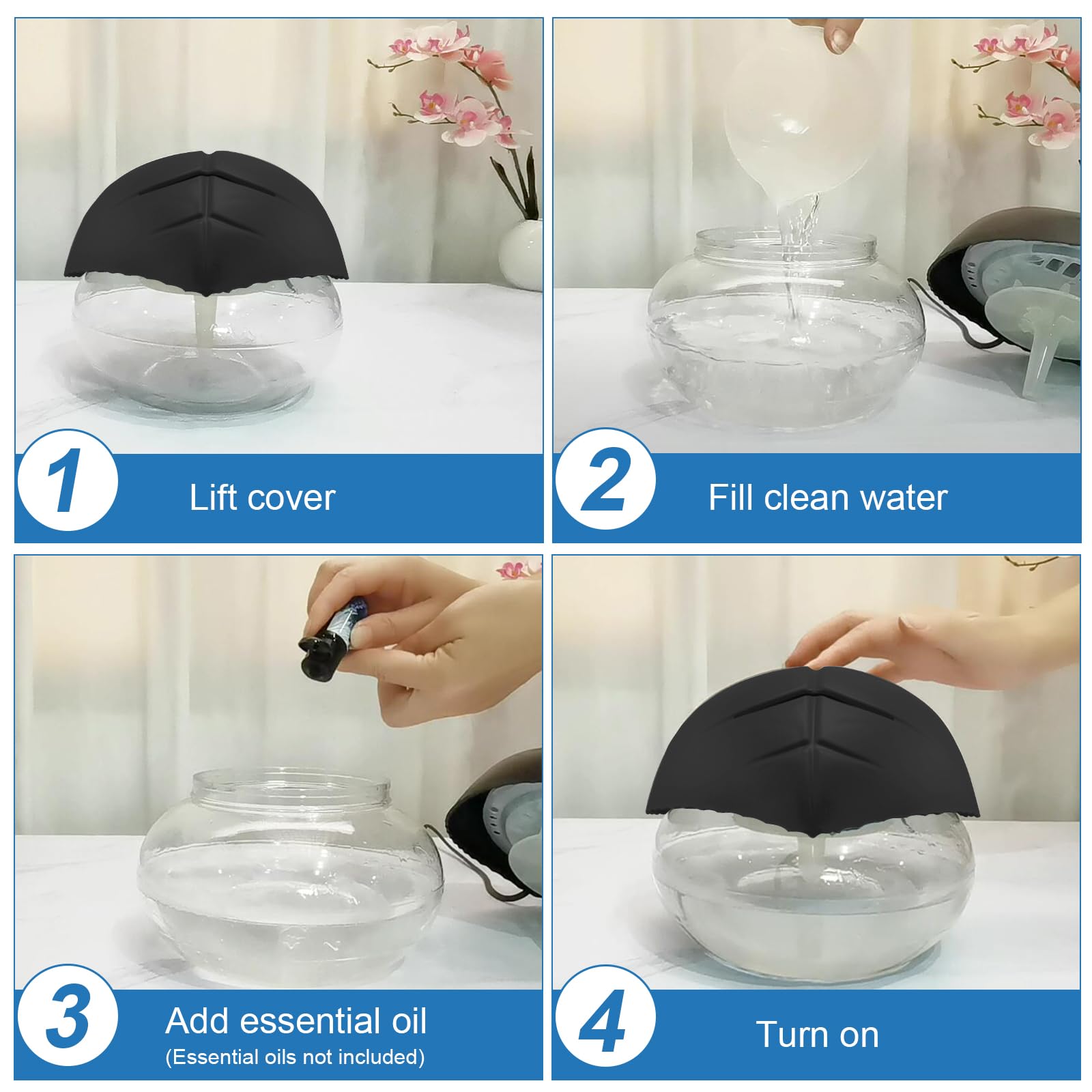 • Material: Made with BPA FREE material, can be used with confidence. And you can add a few drops of essential oils into the air purifier, turn stale, dirty air into fresh scented air.