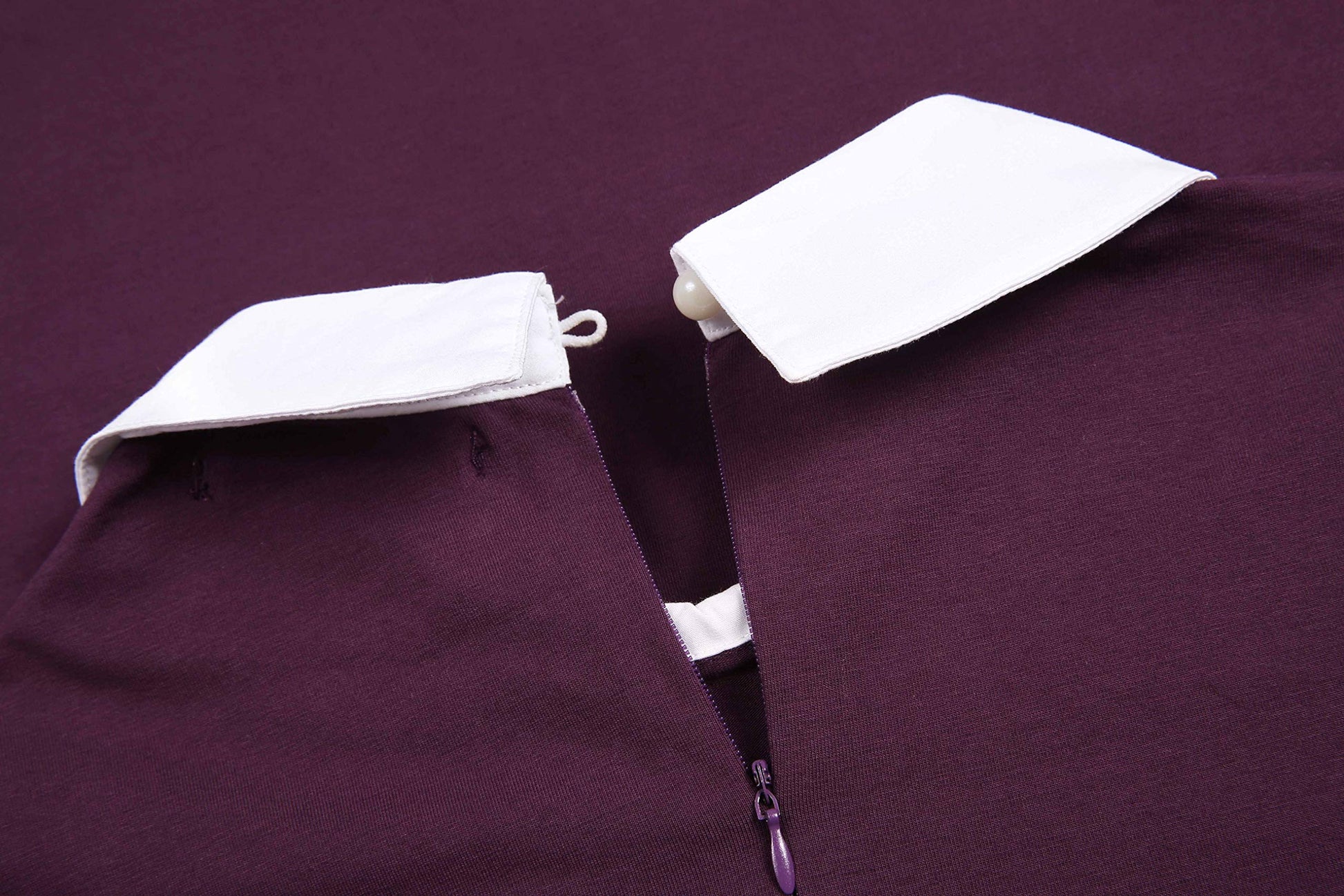 • Long sleeve, high waist, above the knee length, fit and flare dress with white collar, cute skater dress. Peter Pan collar, concealed hook and back zipper, vintage collared dress.