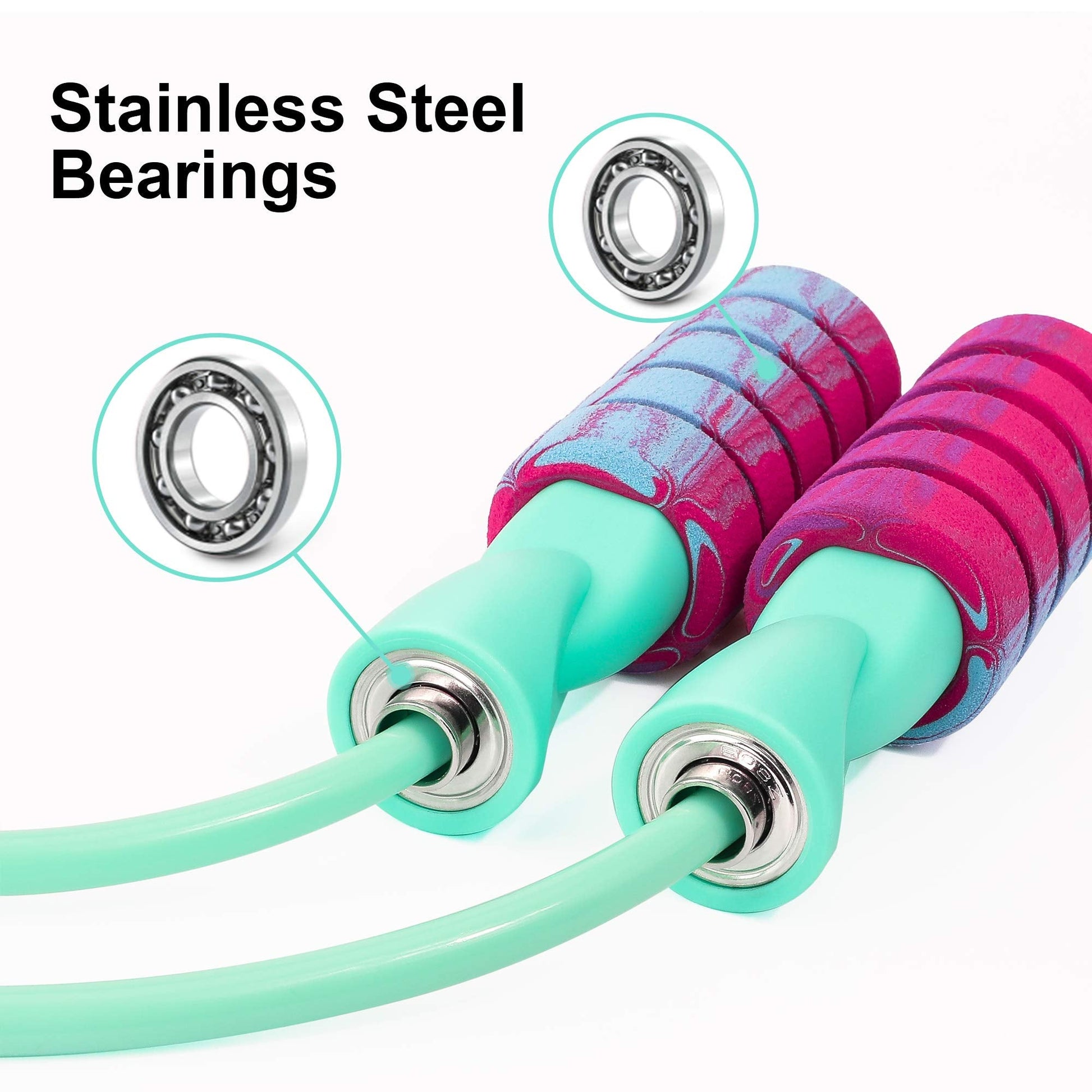 • 【Weighted Jump Rope】: Cordless indoor jump rope solid ball made of EVA, the net weight of solid ball is 230g and it is equipped with a weight block to achieve a better exercise effect. Built-in with high-quality ball bearings, the jump rope provides you with smooth jump exercises.