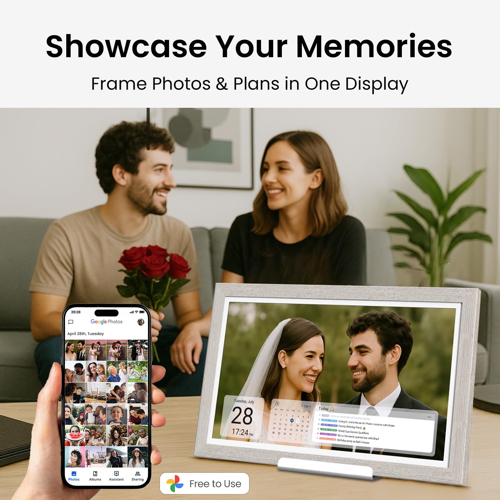 • MEMORY WALL & SMART SCREENSAVER – TOTALLY FREE Turn your calendar into a live digital photo frame by showcasing your favorite memories. Easily connect with Google Photos or upload directly—no subscriptions or third-party apps required. Display photos, family celebrations, or even motivational quotes as your screensaver.