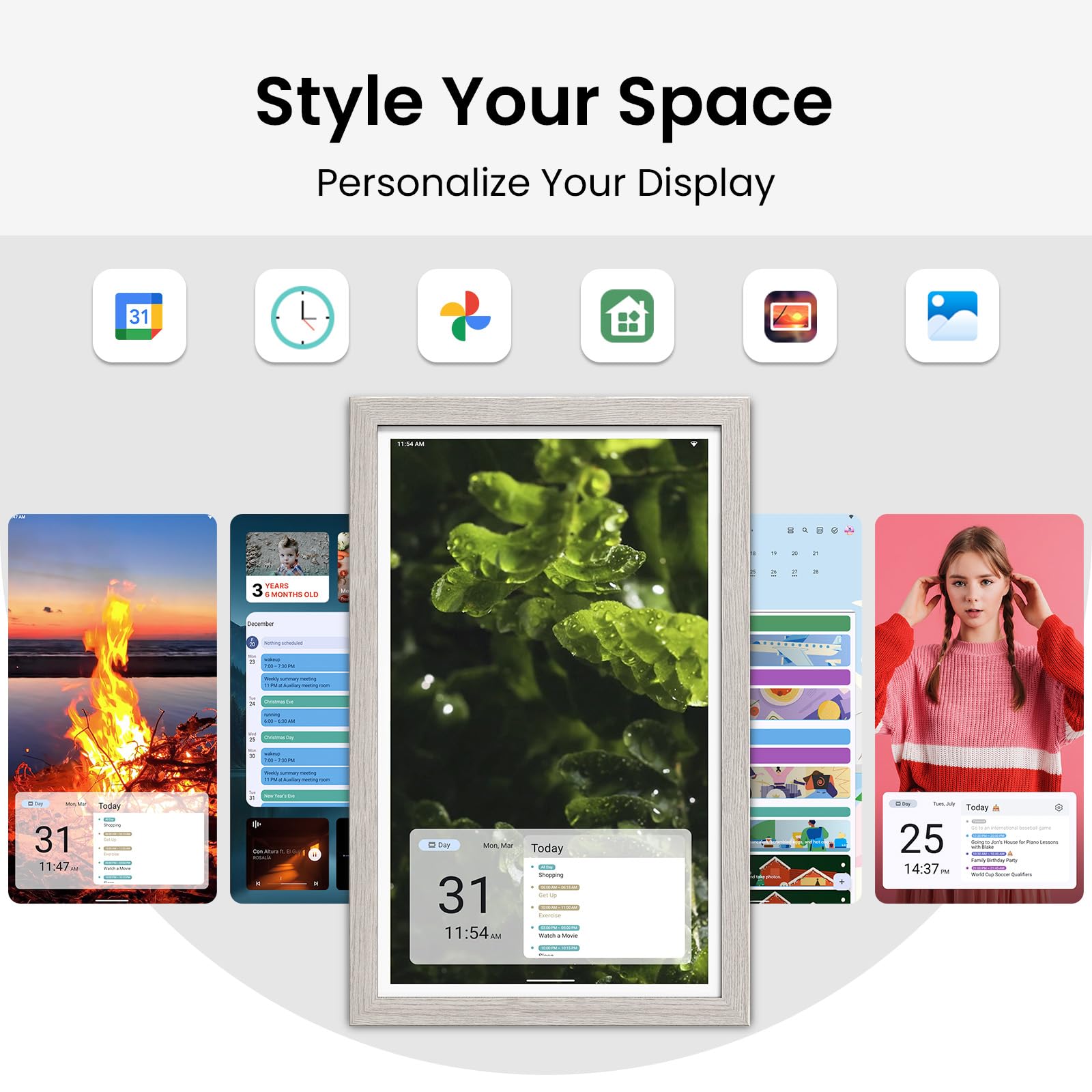 • HD DISPLAY WITH WOODEN FRAME: The touchscreen with Incell + AG Tech offers stunning clarity and glare-free viewing. Designed for flexible placement, it supports wall mounting (mounting accessories included) or can be used with a compatible stand (sold separately). Easily switch between portrait and landscape modes. The adjustable sleep/wake function ensures energy efficiency while the elegant wooden frame blends seamlessly into any home décor.