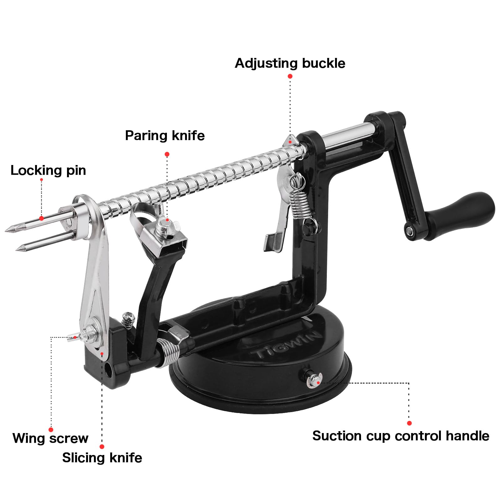 Apple Peeler Corer, Long lasting Chrome Cast Magnesium Alloy Apple Peeler Slicer Corer with Stainless Steel Blades and Powerful Suction Base for Apples and Potato(Black)