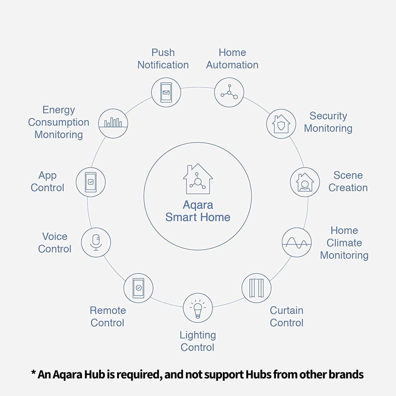 • [Notes]An Aqara Hub is required and sold separately.(NOTE:Not support hubs from other brands.) Requires a secured 2.4 gigahertz Wi-Fi network connection for Hub M2/ M1S/ E1/M1S Gen2 and Camera Hub G2H Pro/ G2H, and 2.4/ 5 GHz Wi-Fi for Camera Hub G3.(Wired connection via Ethernet RJ45 for Hub M2 is also supported)