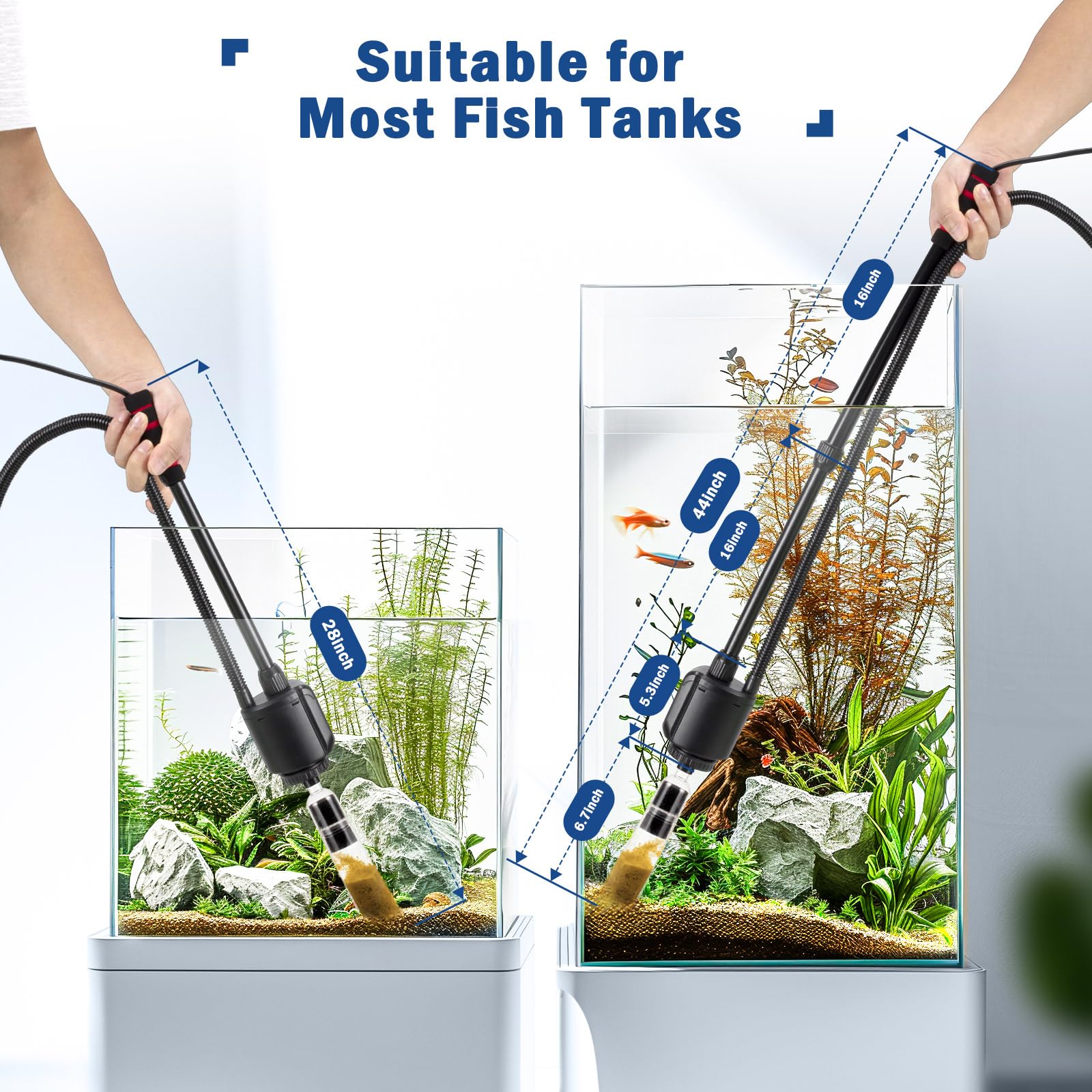 • Extendable Handle Suitable For All Fish Tanks: The tube can be extended from 16.9 inches to 33.6 inches; Suitable for various sizes of fish tanks; External switch for easy operation, please note that the switch is not waterproof, please stay away from water
